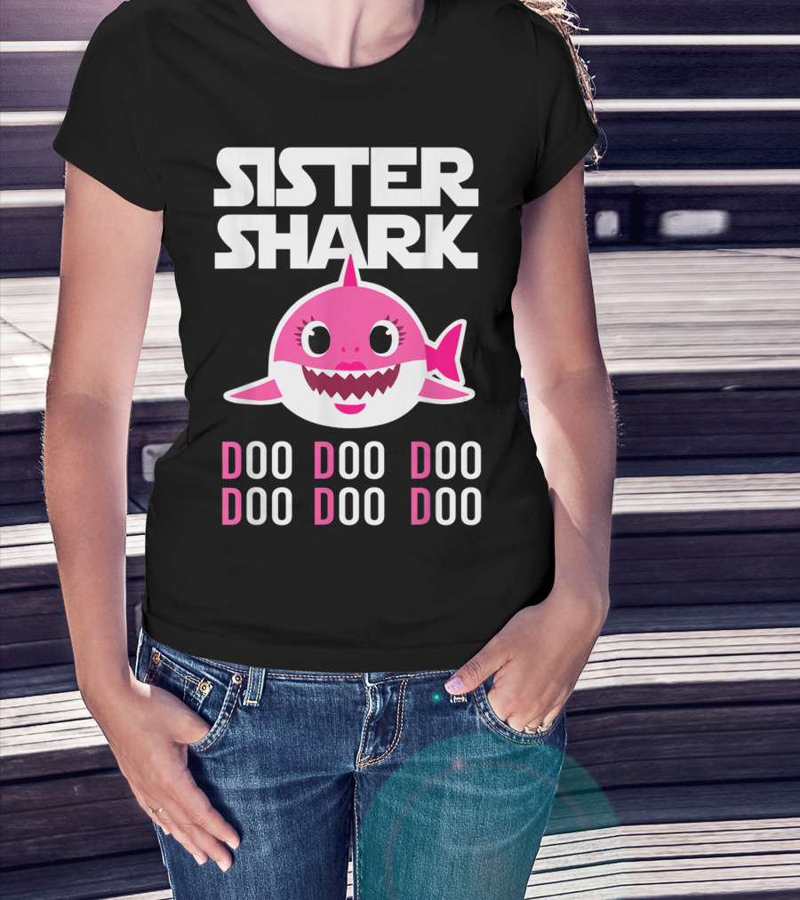 Sister Shark Doo Doo Doo Pink Cartoon T-Shirt