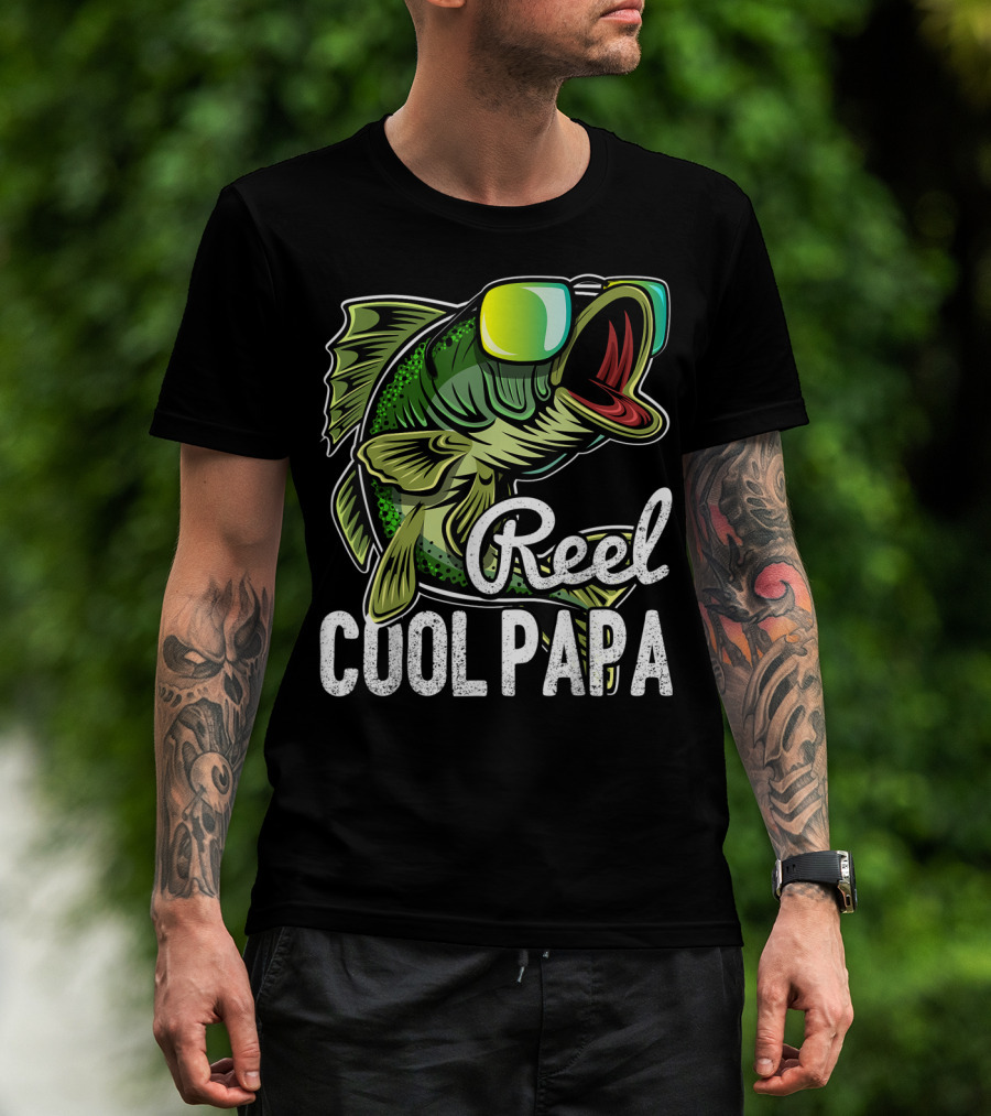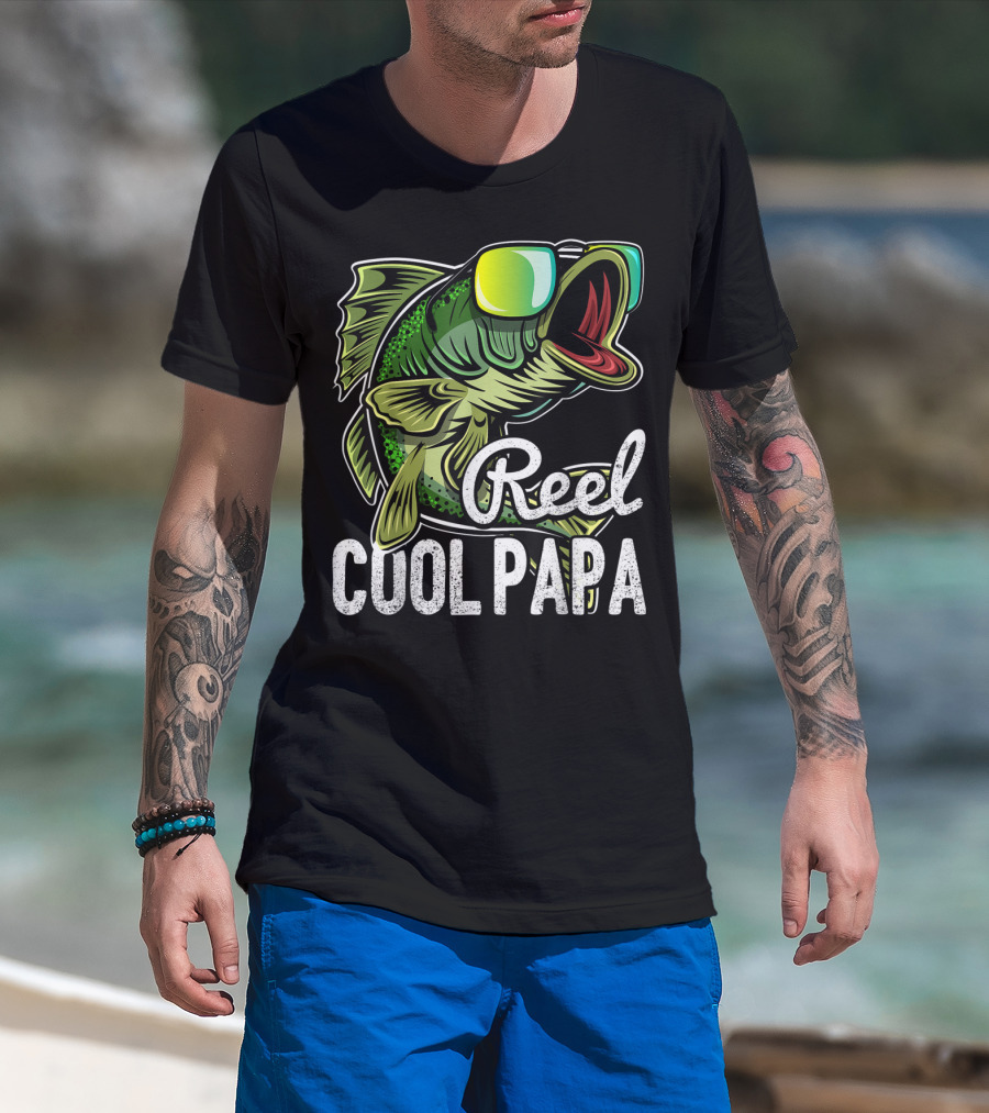 Mens Reel Cool Papa Fishing Sunglasses Father's T-Shirt
