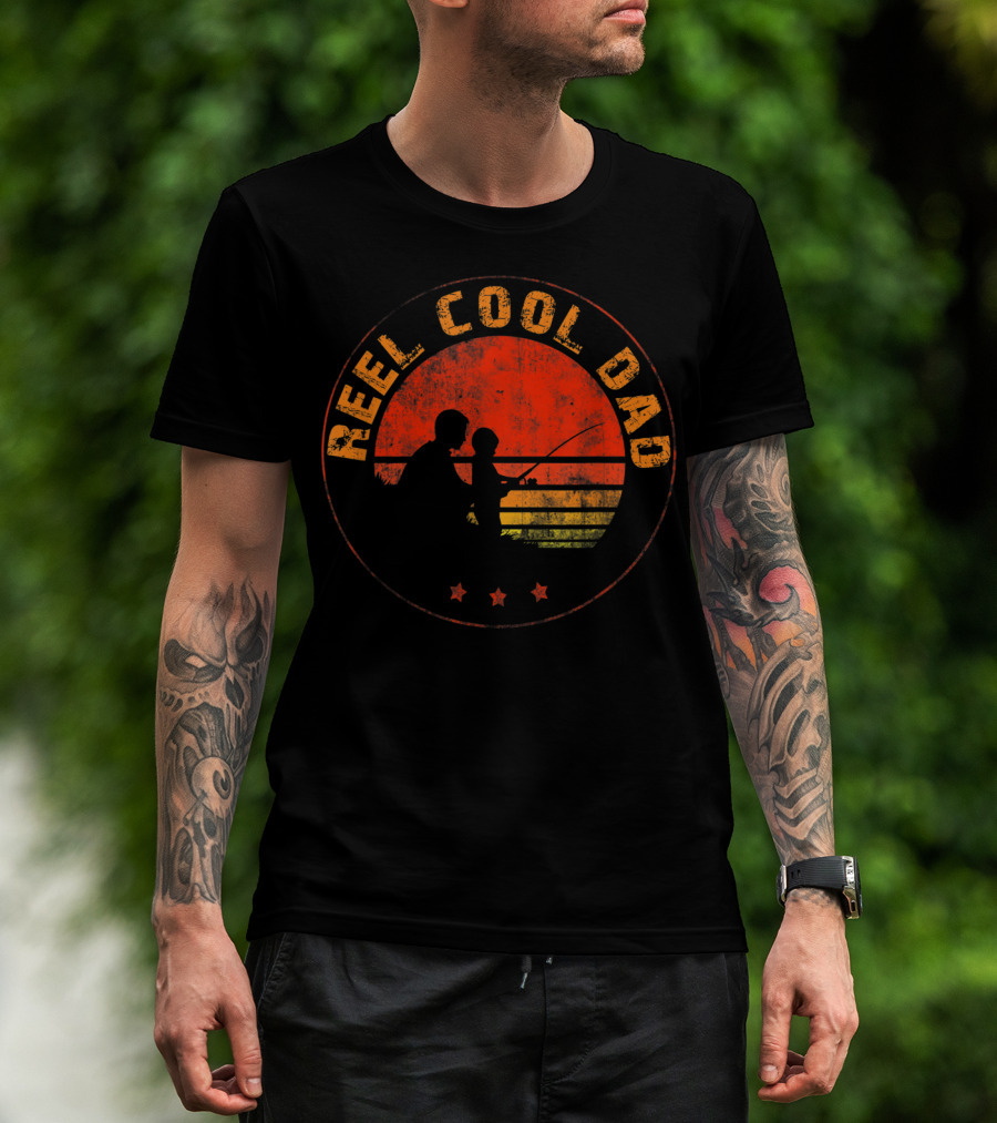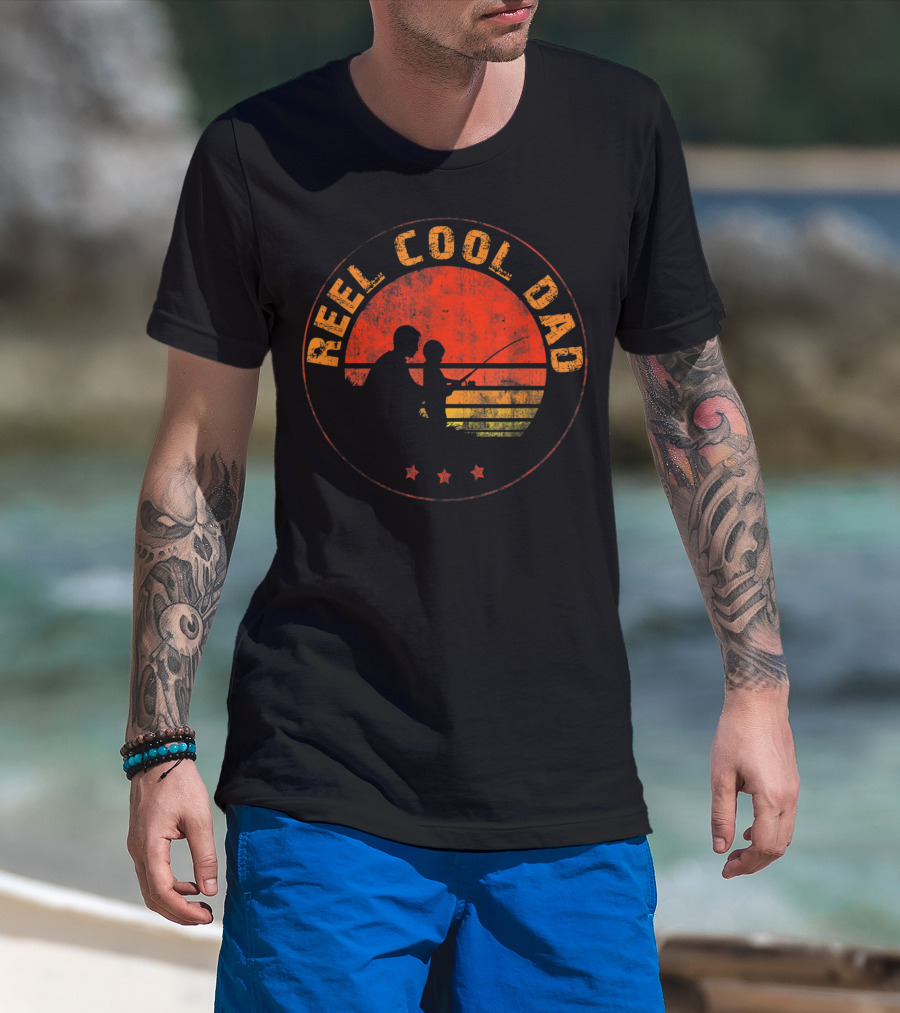 Reel Cool Dad Fishing Daddy Vintage Retro Sunset T-Shirt