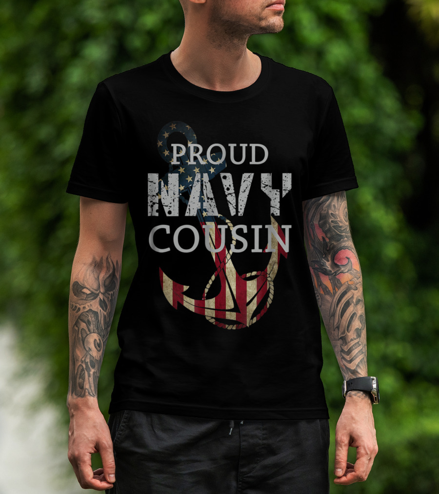 Proud Navy Cousin American Flag Anchor T-Shirt