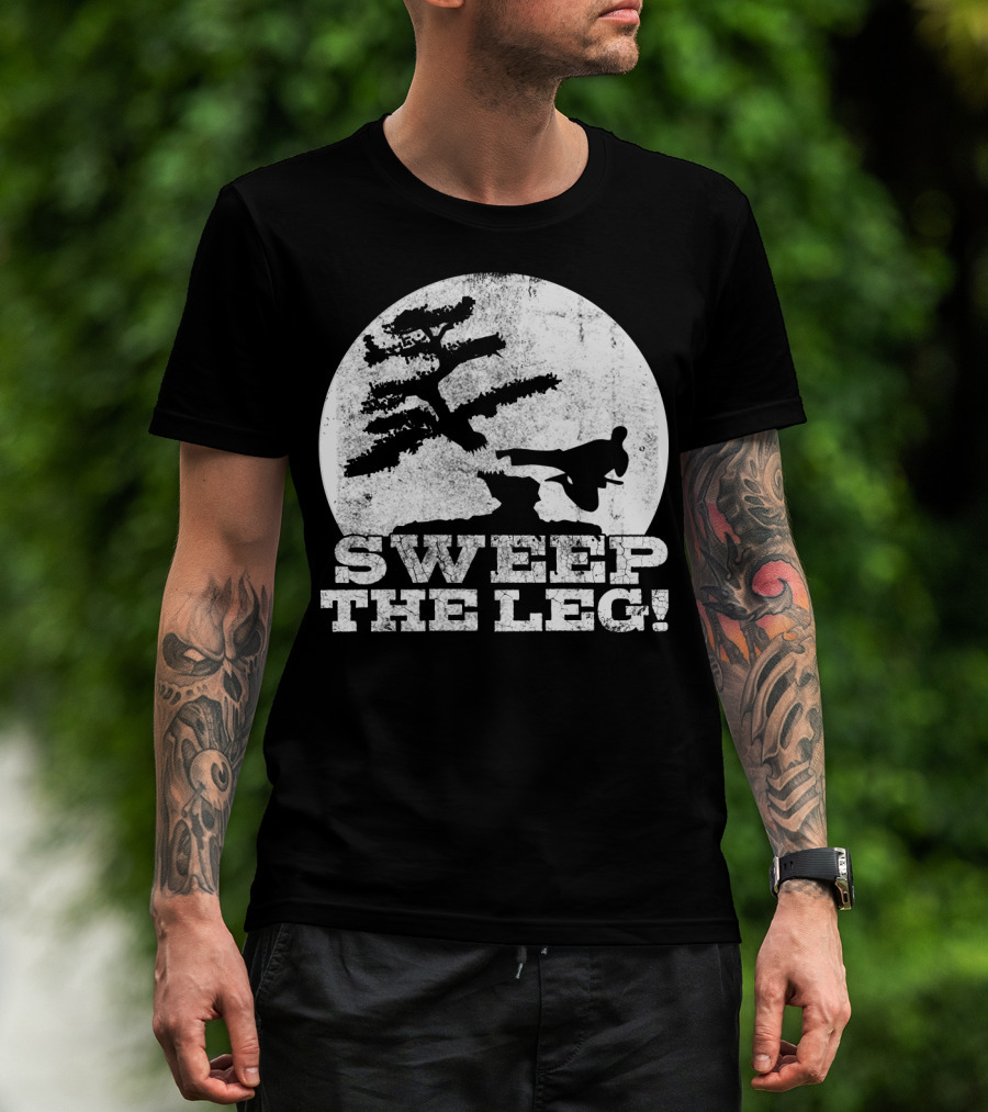 The Sweep The Leg Karate Silhouette Bonsai Moon T-shirt is designed for everyday wear and a consistent fit. Fabric is pre-shrunk ring-spun cotton with durable stitching. See the size chart below for exact measurements.