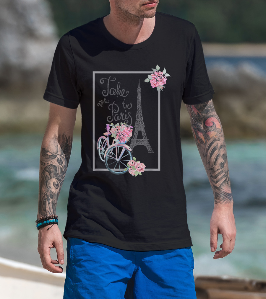 Take Me To Paris Eiffel Tower Bicycle With Roses Love Paris French T-Shirt