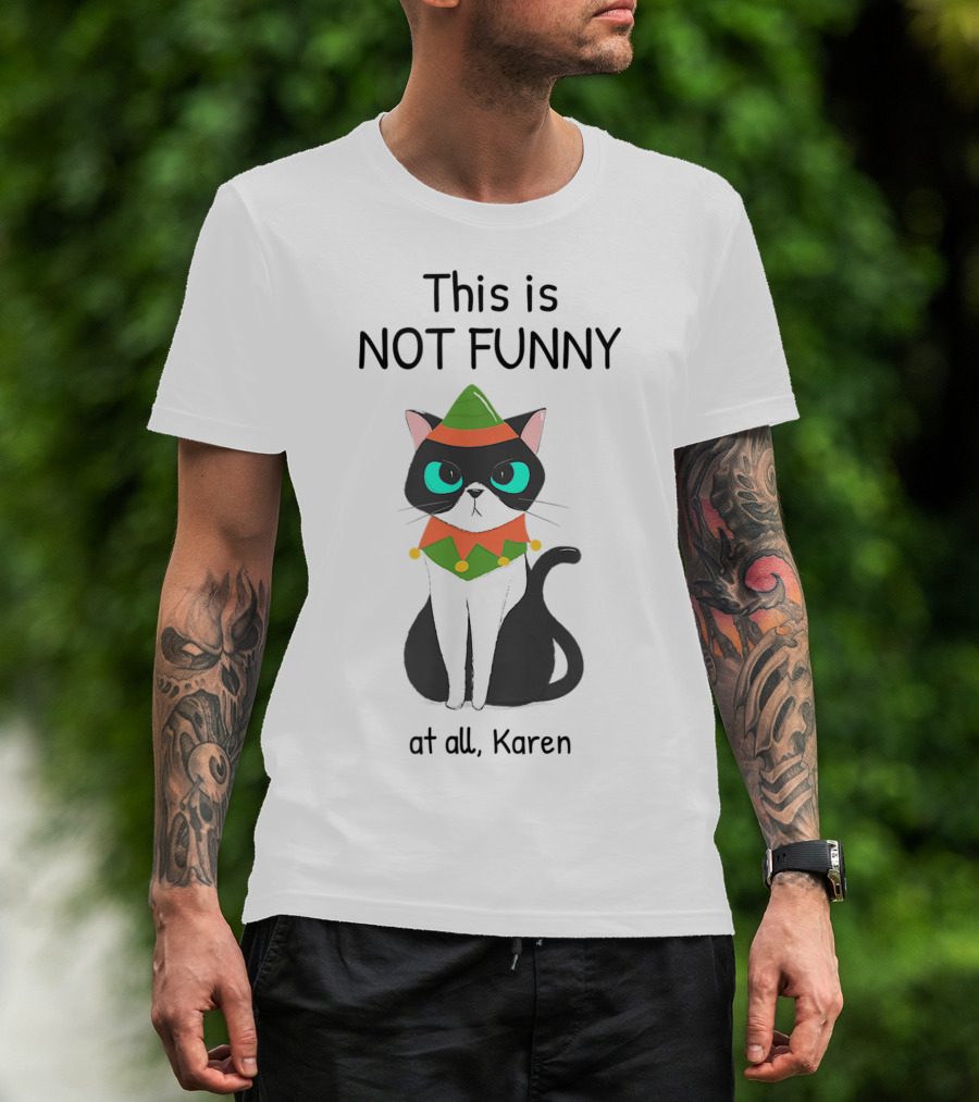 This Is Not Funny At All Karen Cat Dressed Like An Elf T-Shirt