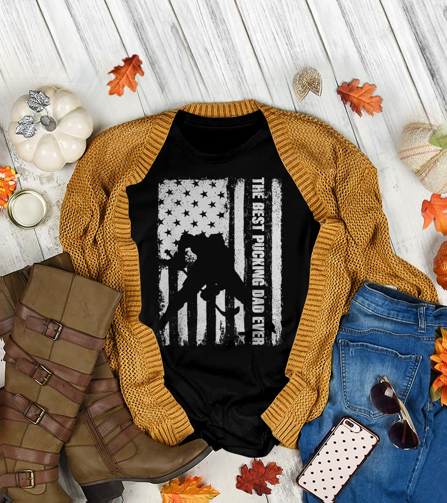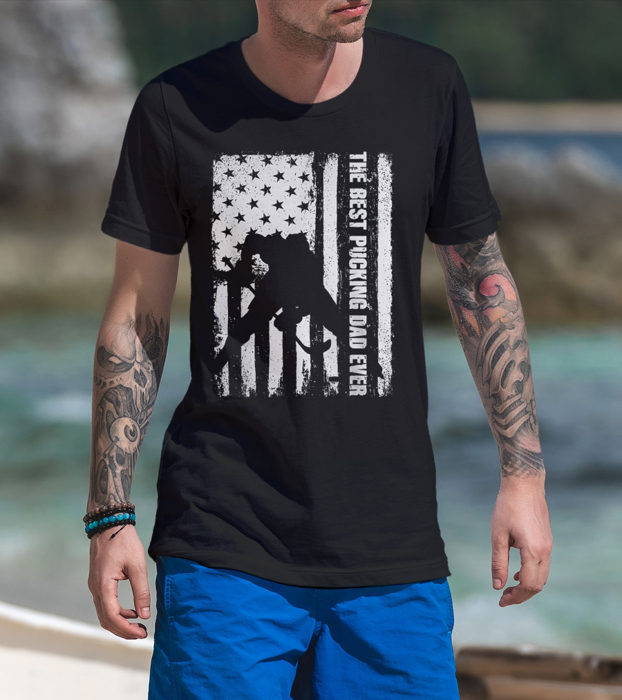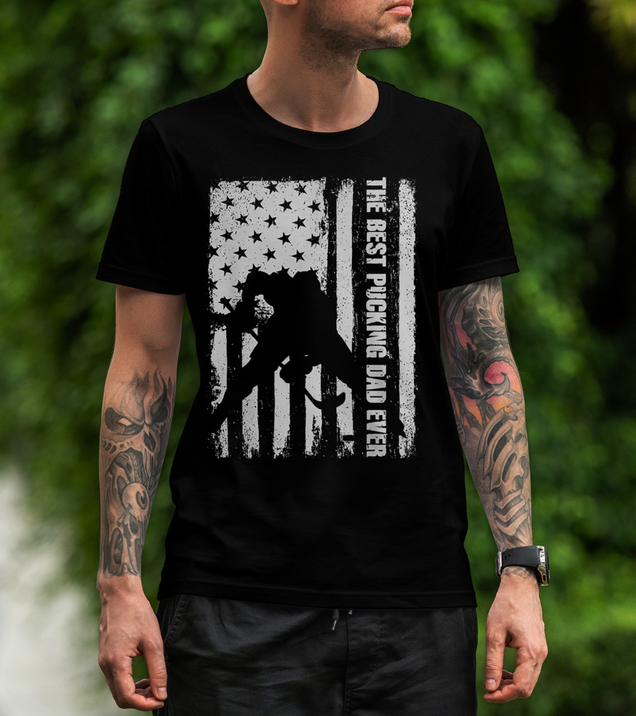 The Best Pucking Dad Ever Flag Hockey Silhouette Stars Stripes T-Shirt