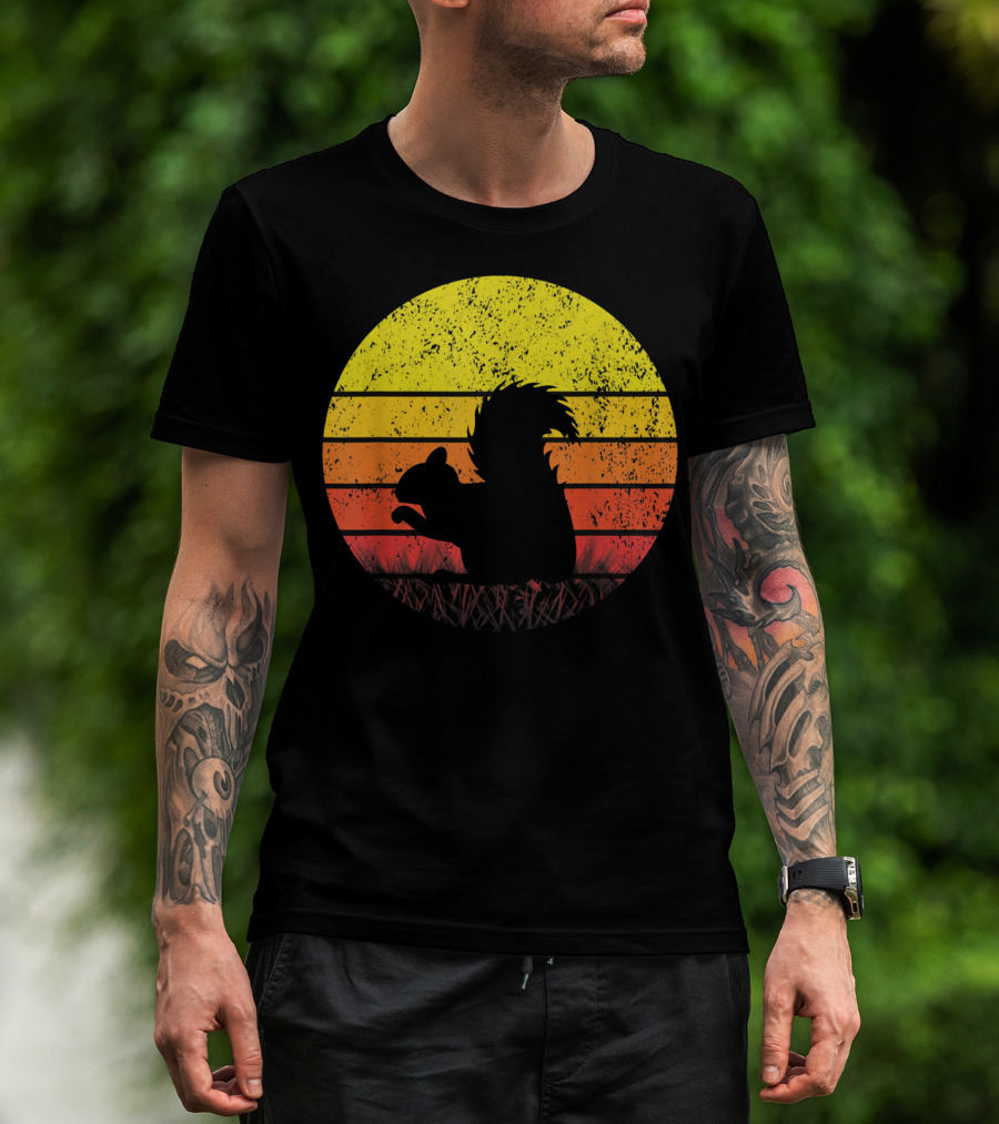 Retro Sunset Squirrel Silhouette Vintage Safa T-Shirt