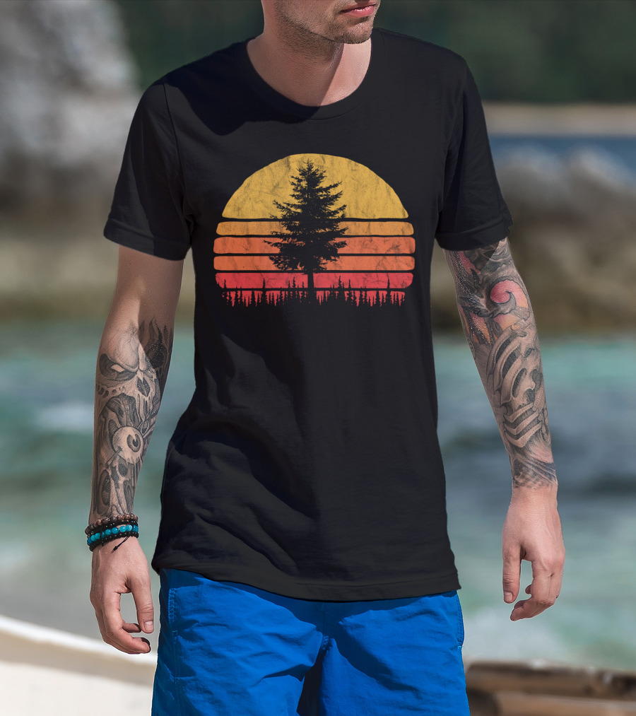 Retro Sun Minimalist Pine Tree Scenic T-Shirt