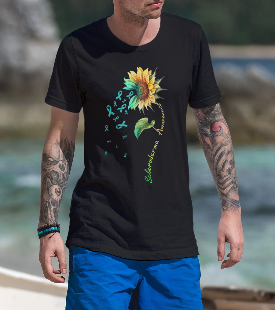Scleroderma Awareness Sunflower With Teal Ribbons T-Shirt