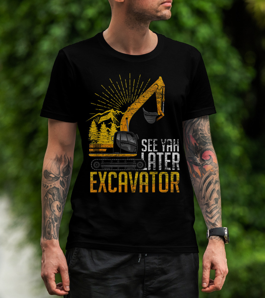 See Yah Later Excavator Mountains And Trees Scene T-Shirt