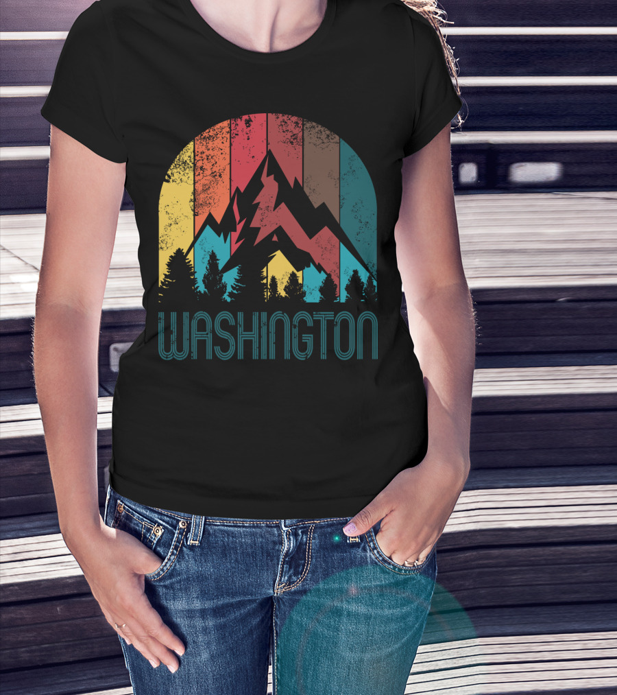 Washington Retro Mountain Landscape Forest Silhouette Vintage Multicolor Stripes T-Shirt