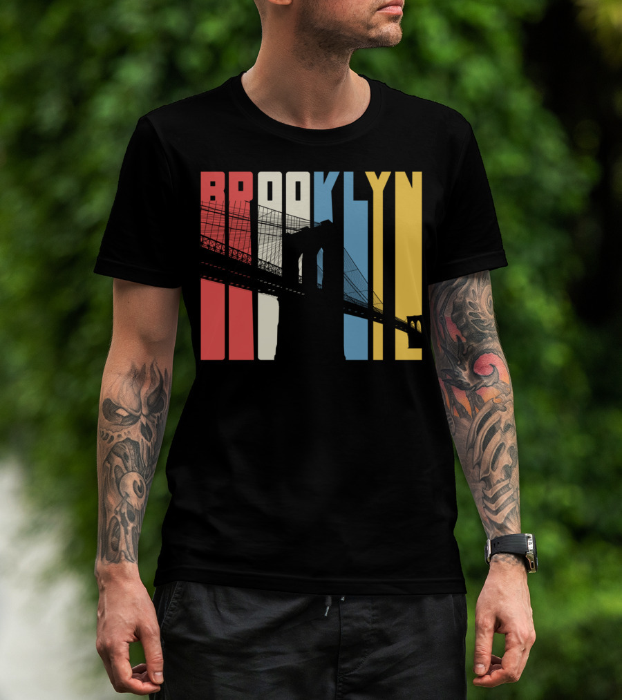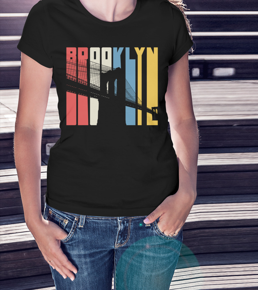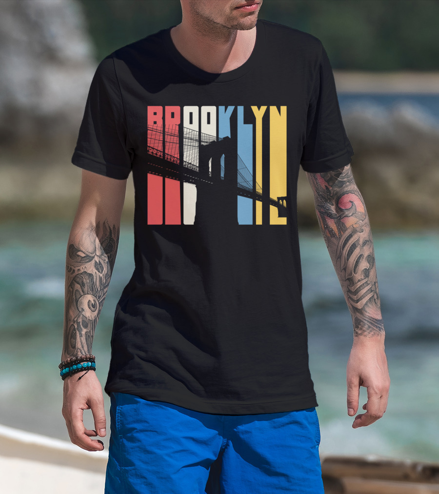 Brooklyn Bridge New York City Red Blue Yellow T-Shirt