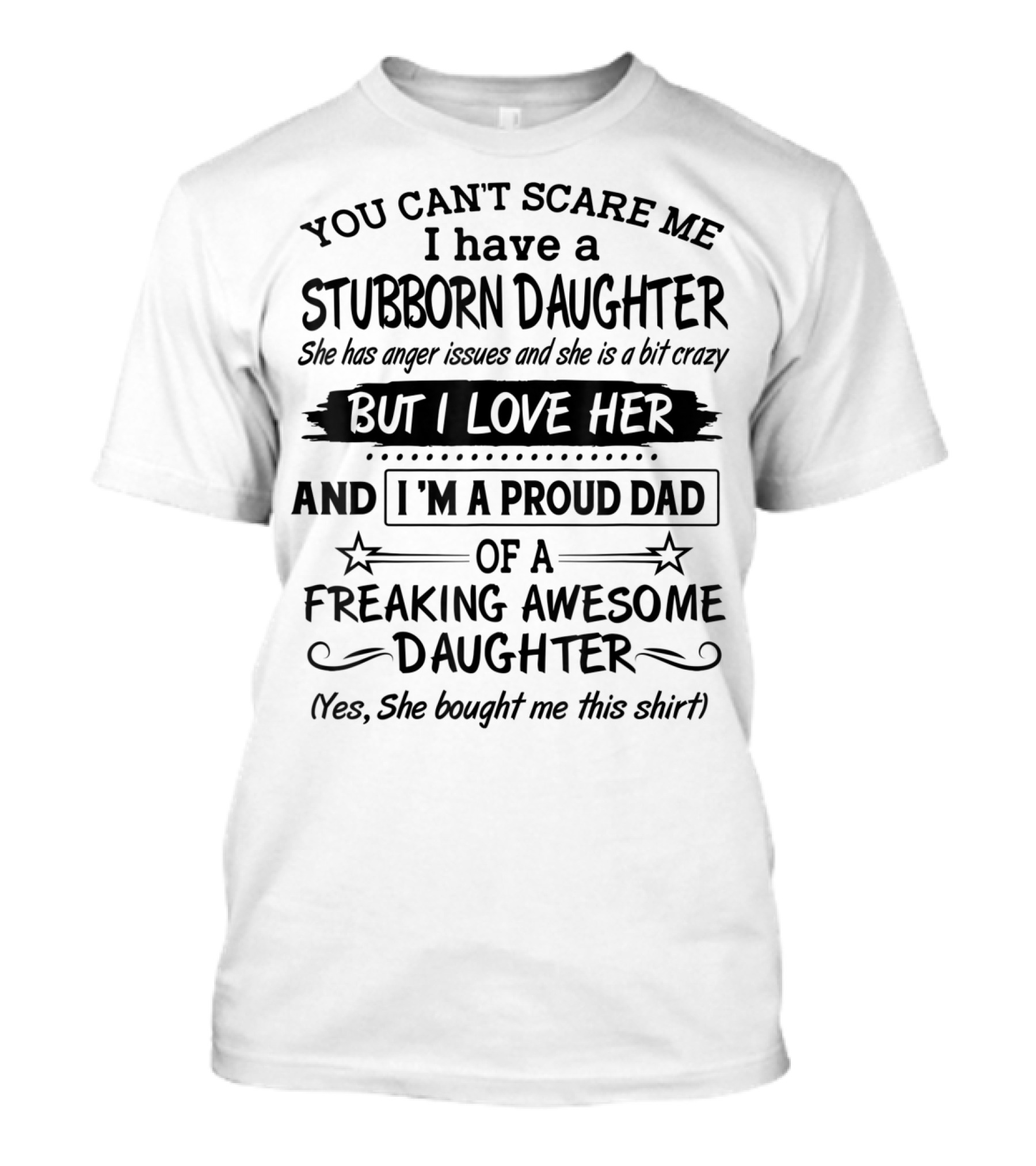 You Can't Scare Me I Have A Stubborn Daughter She Has Anger Issues And She Is A Bit Crazy But I Love Her And I'm A Proud Dad Of A Freaking Awesome Daughter T-Shirt