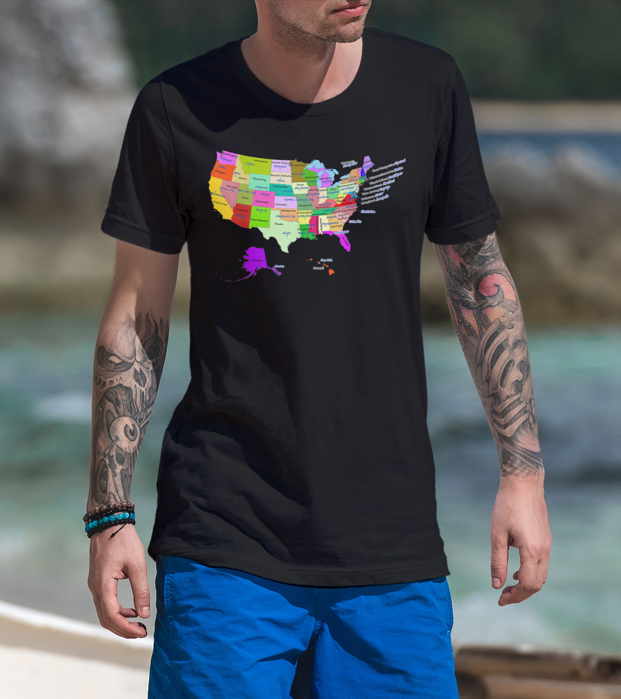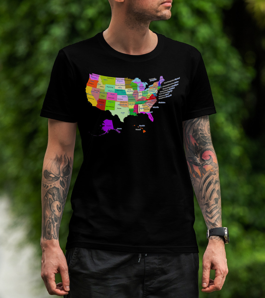 USA Map Displaying States And Capital Cities In Vibrant Colors T-Shirt