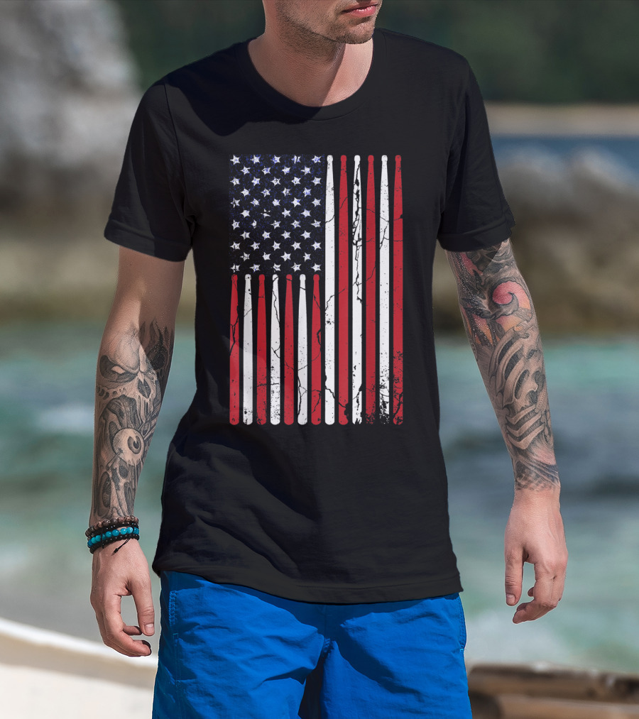 Vintage American Flag Drumsticks Drummer Player T-Shirt