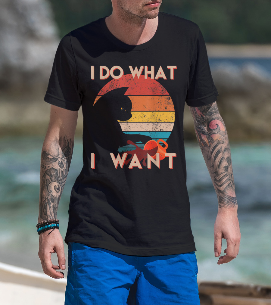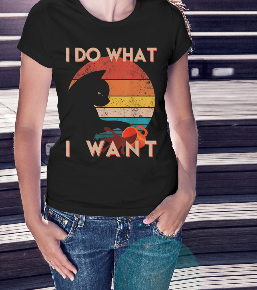 Vintage Cat I Do What I Want Retro Sunset Style Art Cat T-Shirt