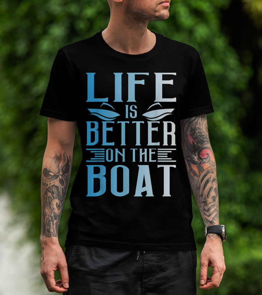 The Life Is Better On The Boat Summer Boating T-shirt is designed for everyday wear and a consistent fit. Fabric is pre-shrunk ring-spun cotton with durable stitching. See the size chart below for exact measurements.