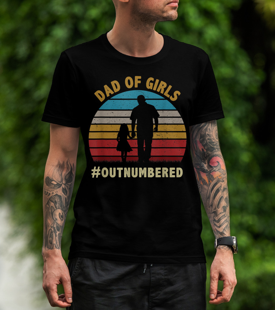 Dad Of Girls Outnumbered Sunset T-Shirt