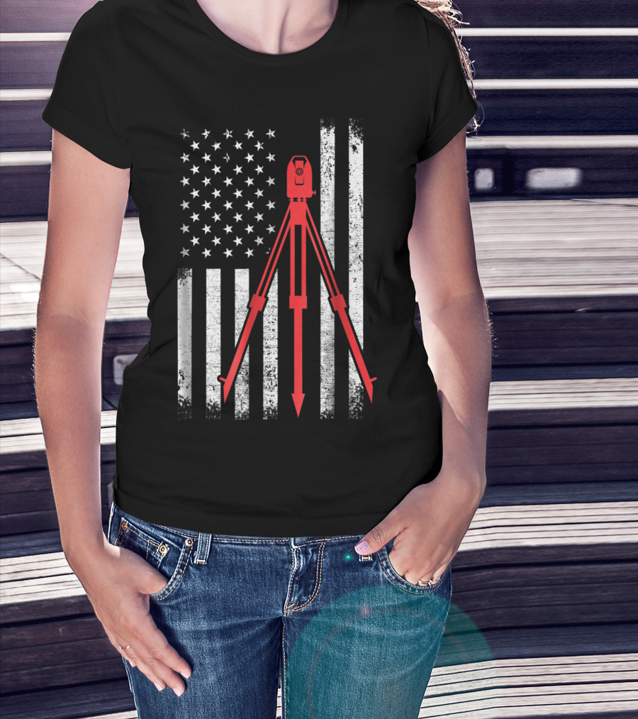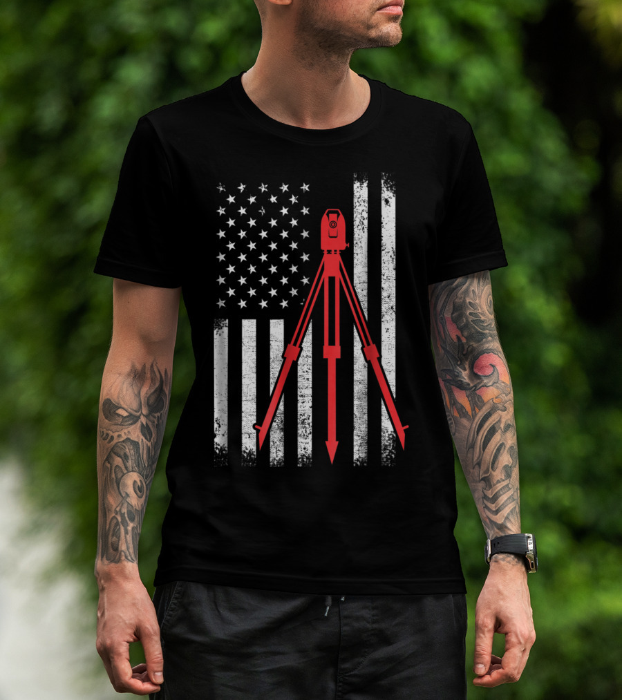 Surveyor Flag USA Surveying Equipment Stars Stripes T-Shirt