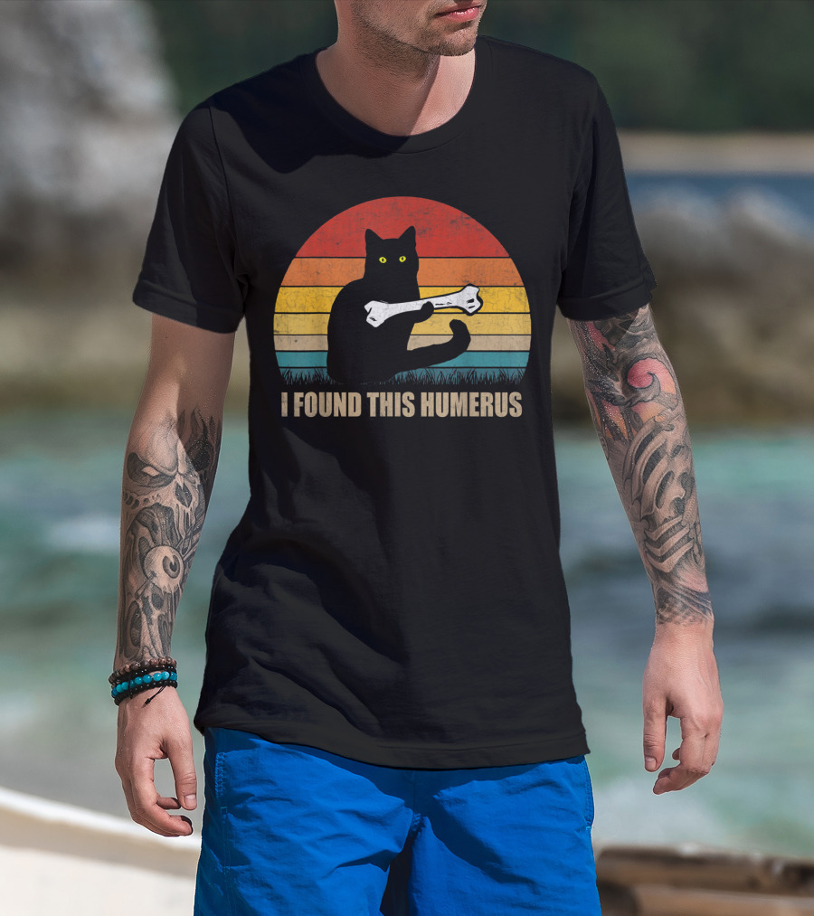 Vintage I Found This Humerus Cat Lover Retro Sunset T-Shirt