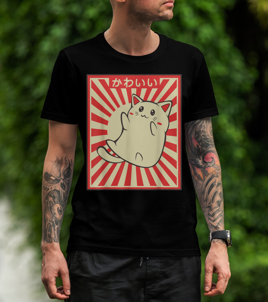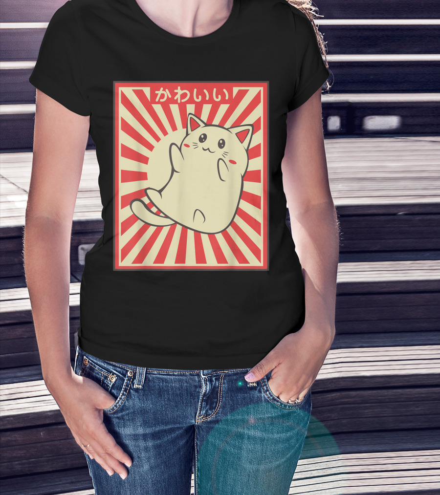 Vintage Japanese Kawaii Meowing Cat Lover T-Shirt