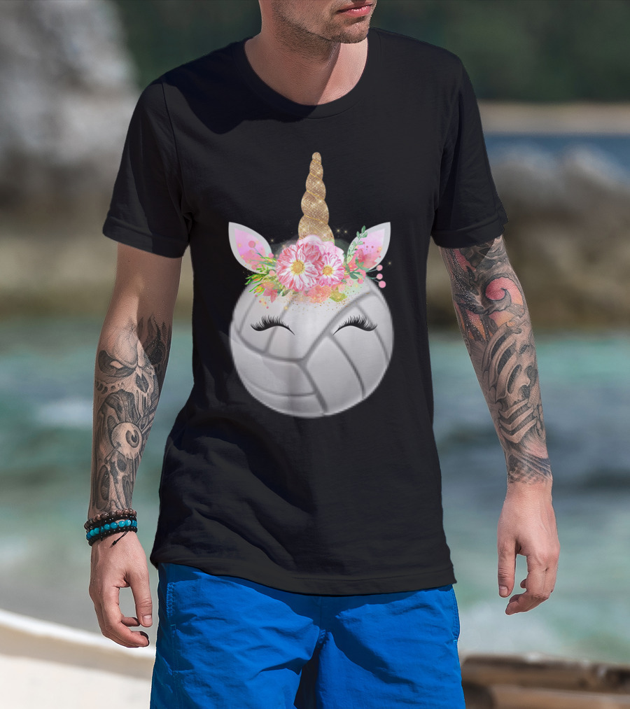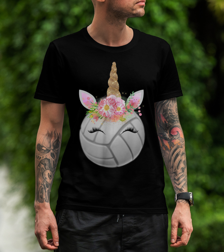 Volleyball Unicorn Funny Sport Love Girls Magical Flower Horn T-Shirt