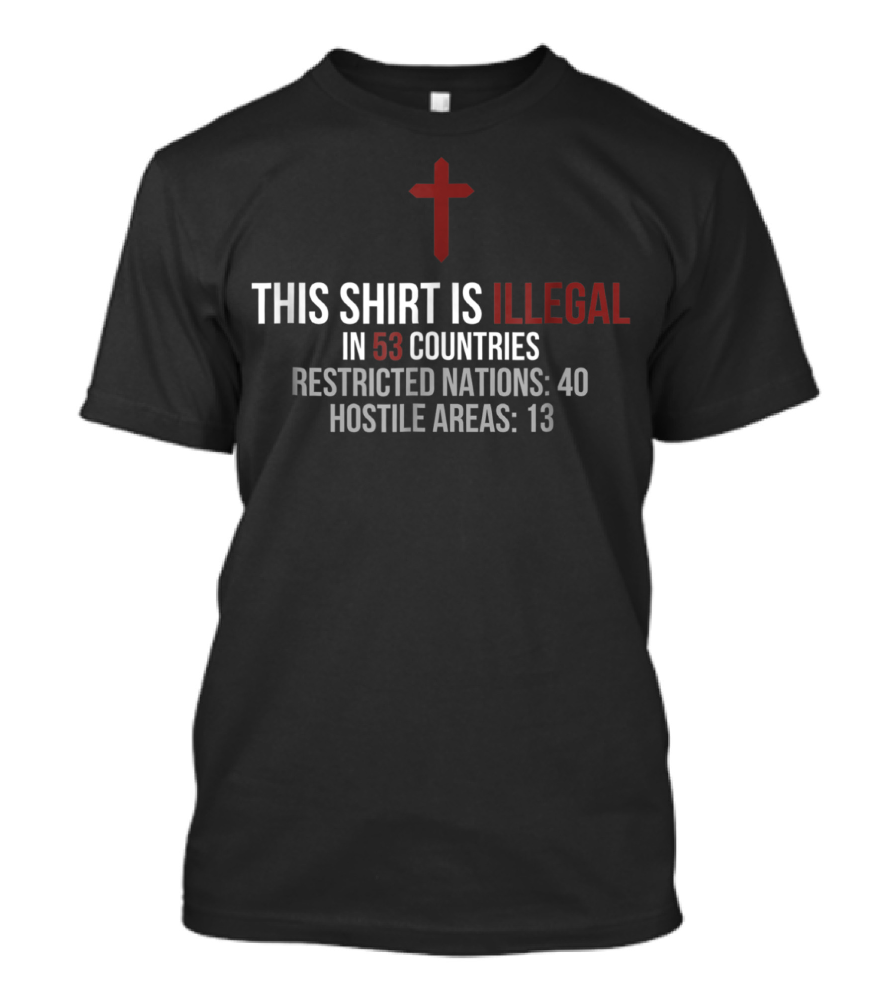 This Shirt Is Illegal In 53 Countries Restricted Nations 40 Hostile Areas 13 Christian Cross T-Shirt