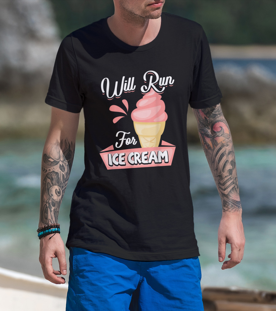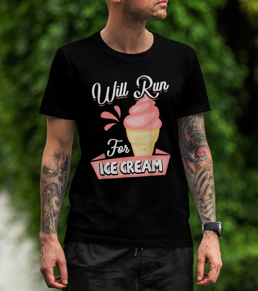 Will Run For Ice Cream Cone Motivational Running T-Shirt