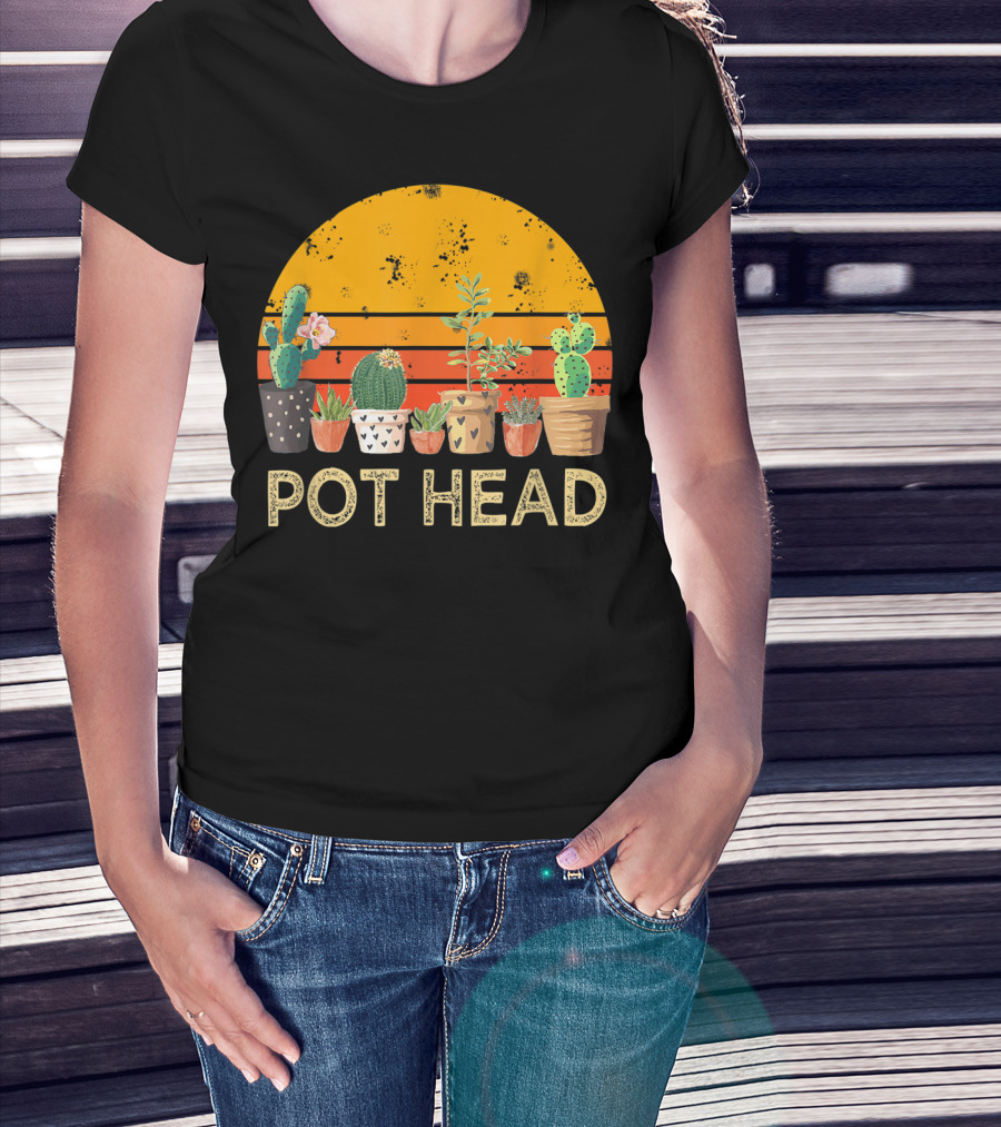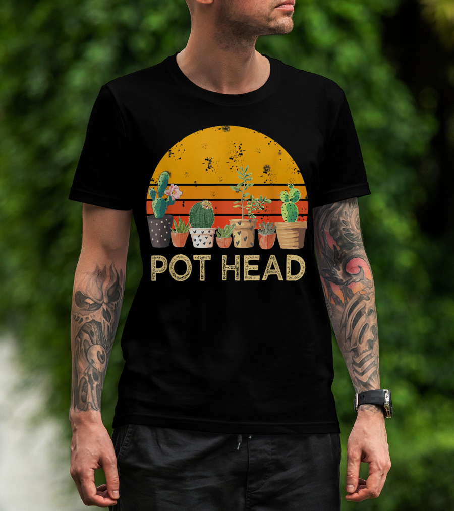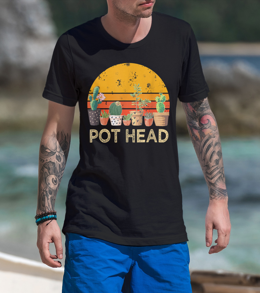 Pot Head Stone Flowers Cactus Vintage Sunset T-Shirt