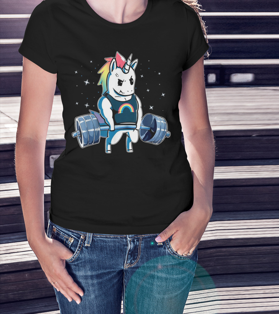 Unicorn Deadlift Powerlifting Rainbow Fitness Gym T-Shirt