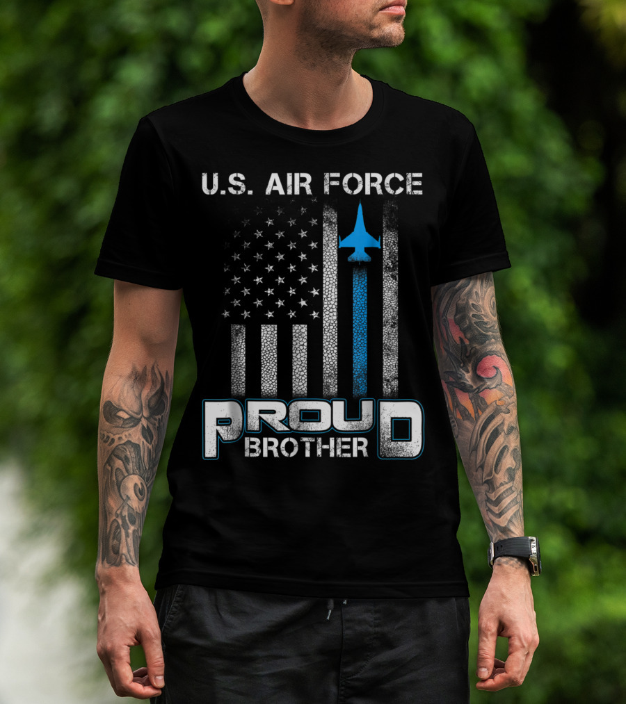 U.S. Air Force Proud Brother American Flag Blue Jet T-Shirt