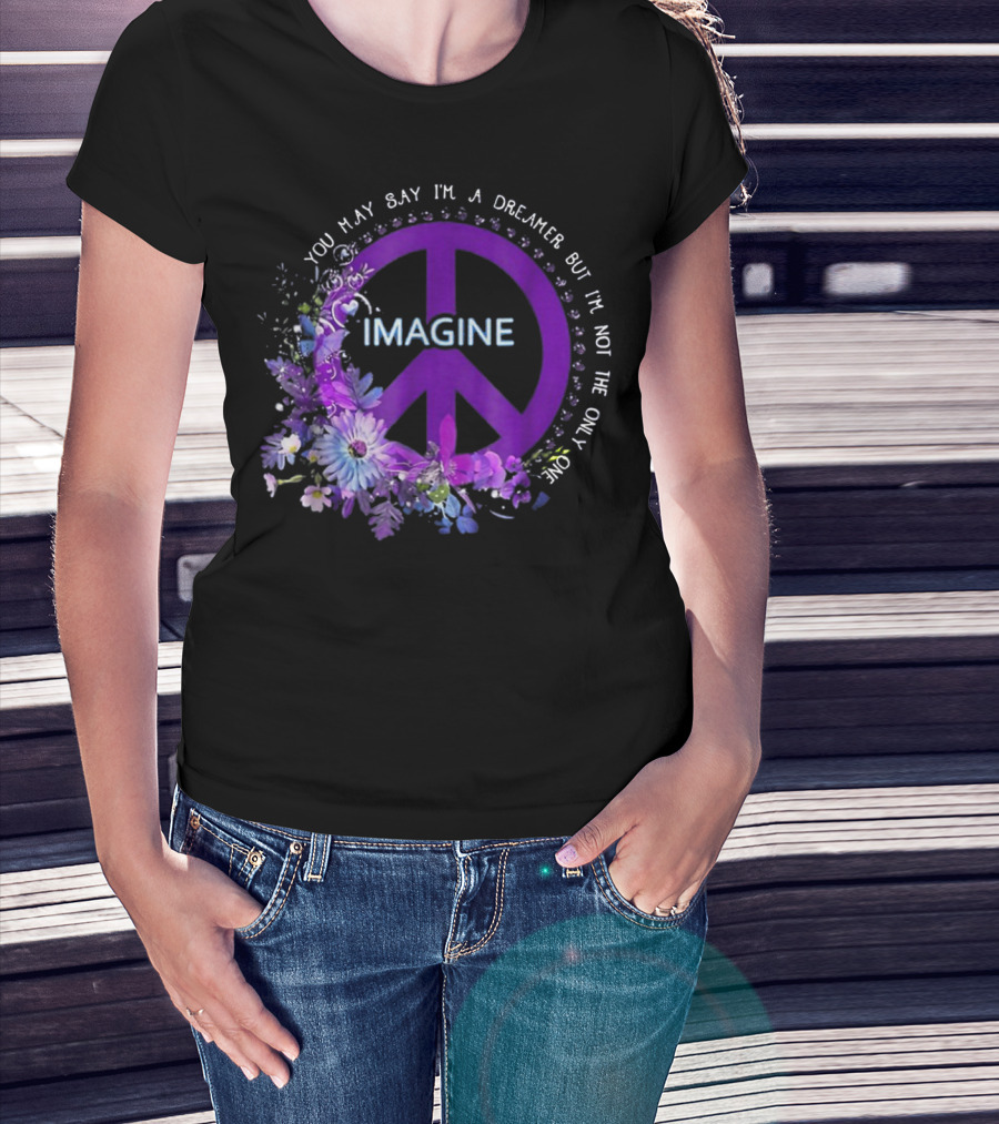 You May Say I'm A Dreamer Imagine Peace Symbol With Purple Floral T-Shirt
