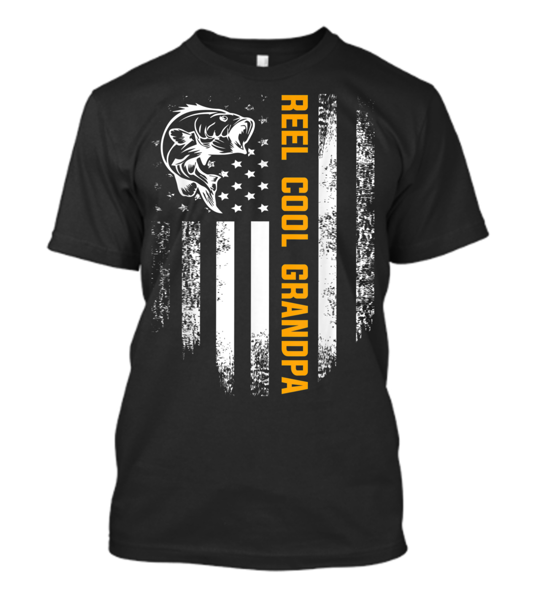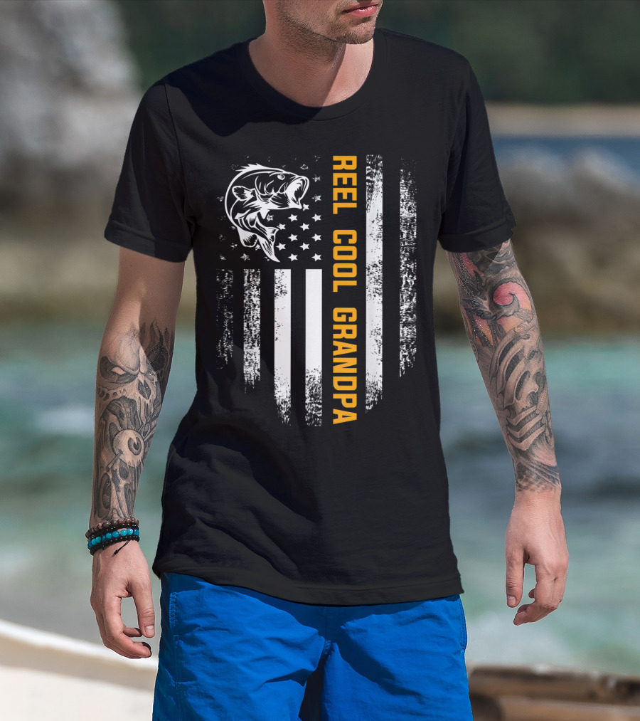 Reel Cool Grandpa Vintage Flag Fishing Bass Fish T-Shirt