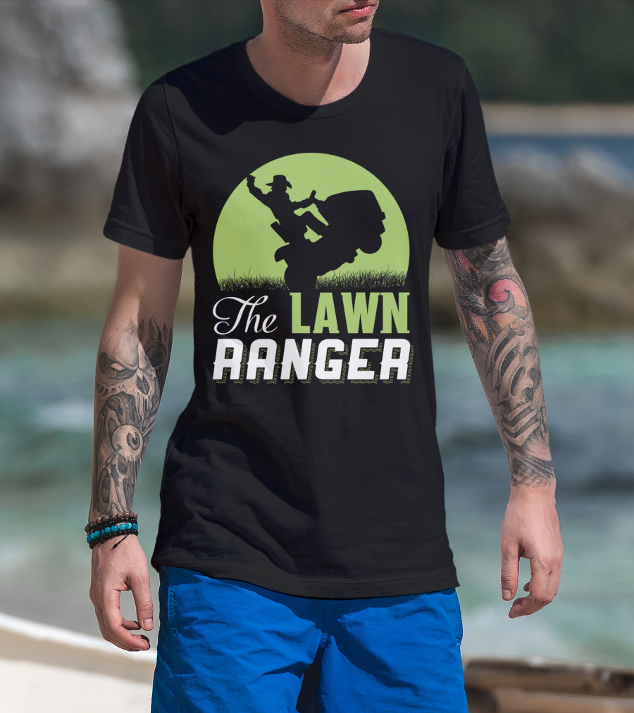 The Lawn Ranger Funny Mowing Cowboy On Ride-On Lawnmower T-Shirt