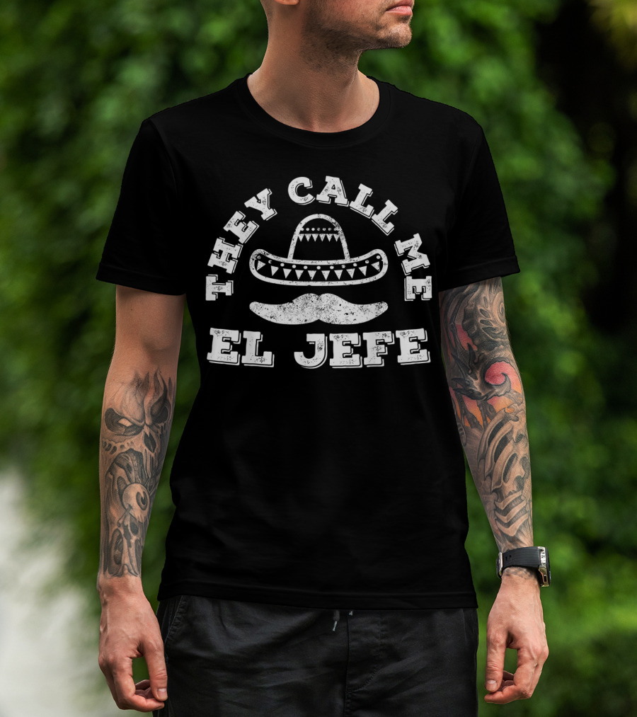 They Call Me El Jefe Cinco De Mayo Sombrero Mustache Party T-Shirt