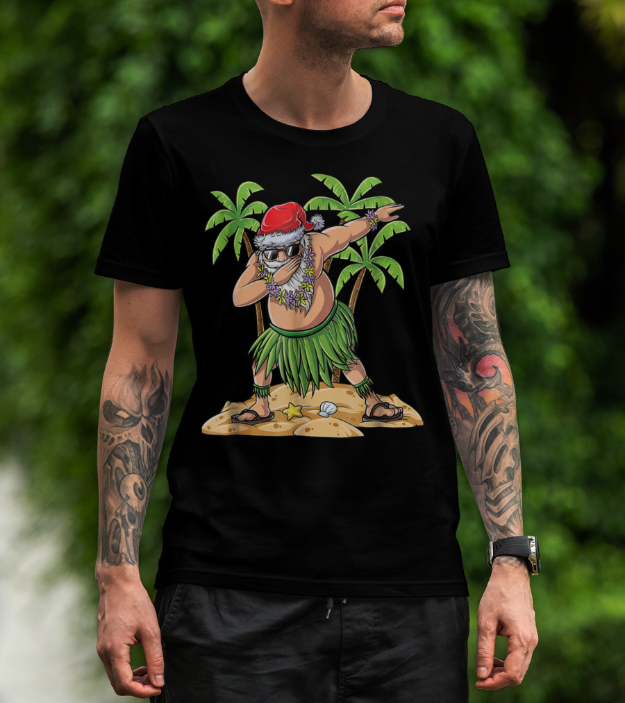 Dabbing Santa Christmas In July Kids Hawaiian Palm Trees Beach Holiday T-Shirt