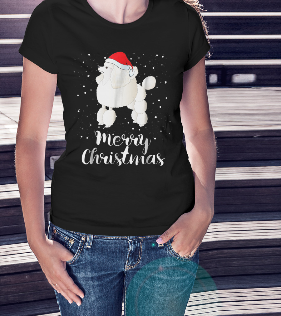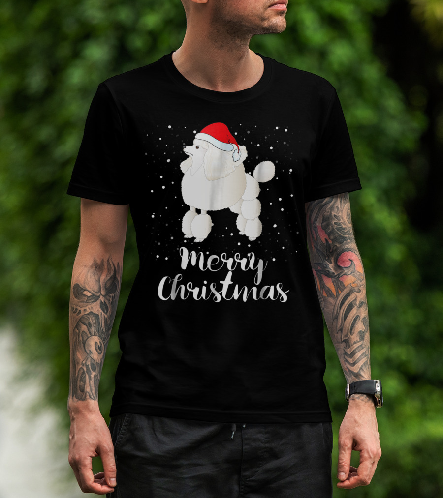 Merry Christmas Poodle Funny Santa Hat Matching Family Group T-Shirt