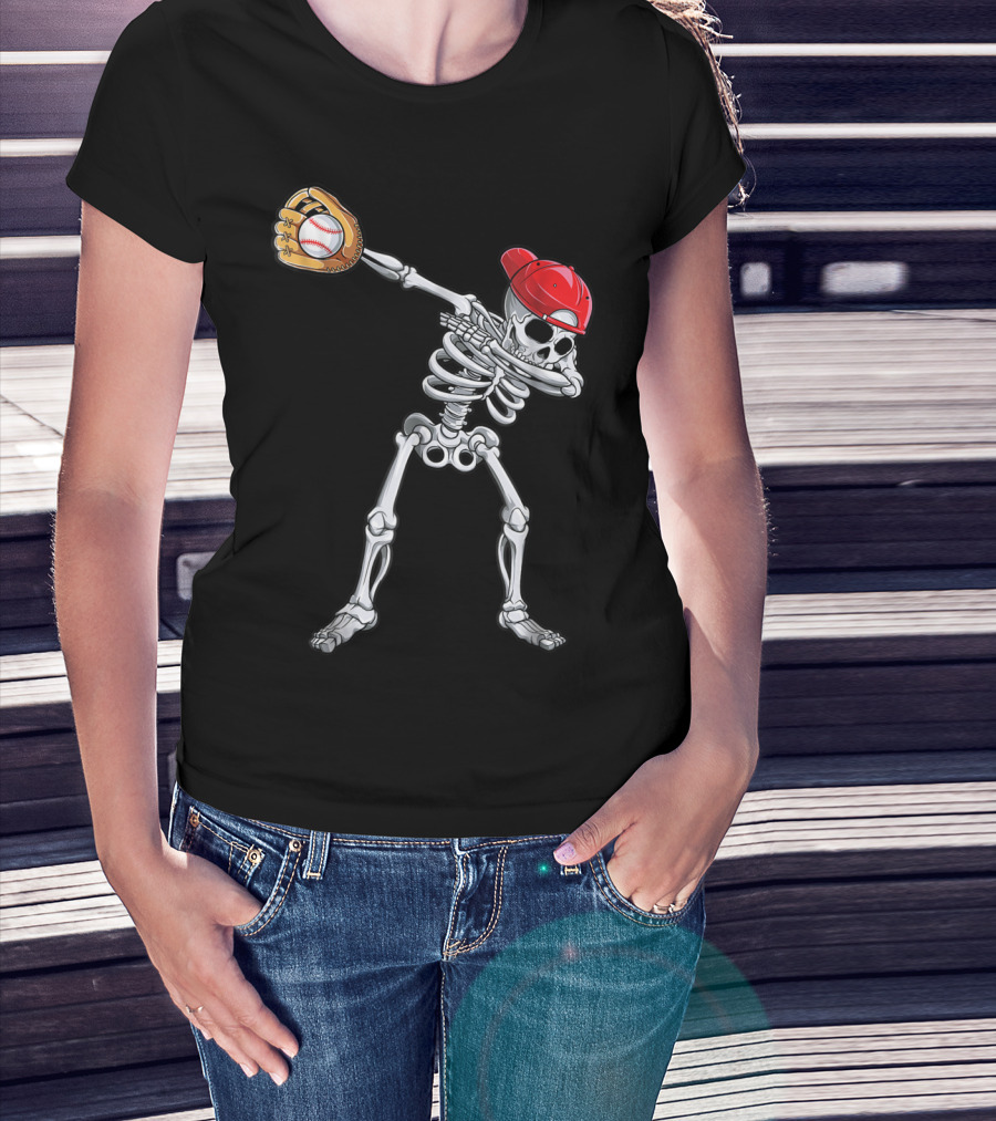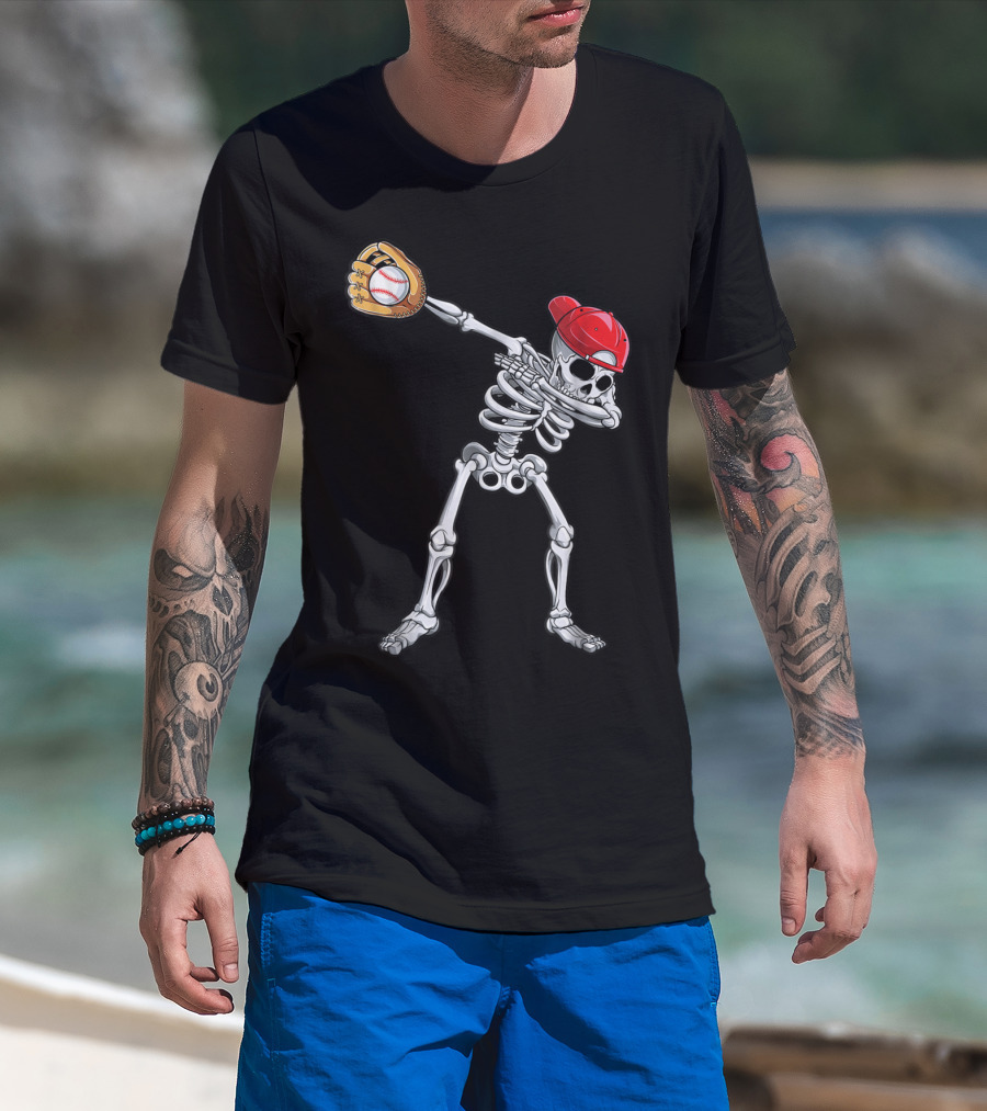 Dabbing Skeleton With Baseball Glove And Cap T-Shirt