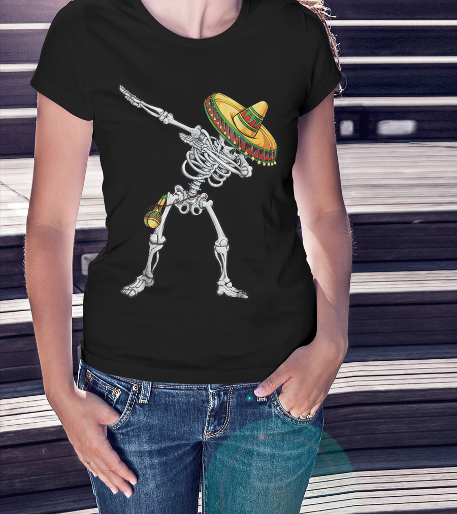 Cinco De Mayo Dabbing Skeleton With Sombrero And Maracas T-Shirt