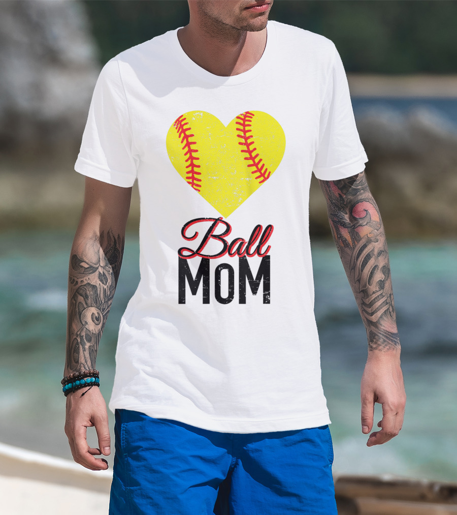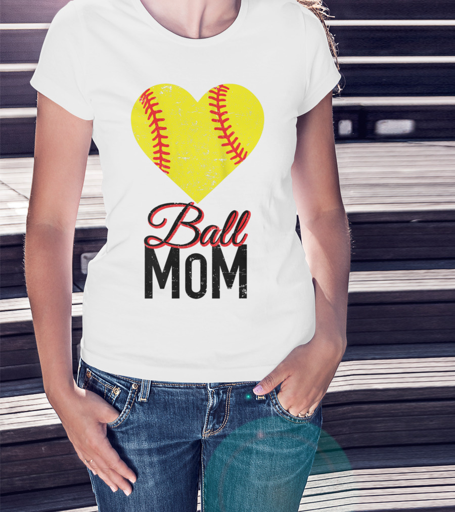 Love Ball Mom Heart Baseball Softball Graph T-Shirt