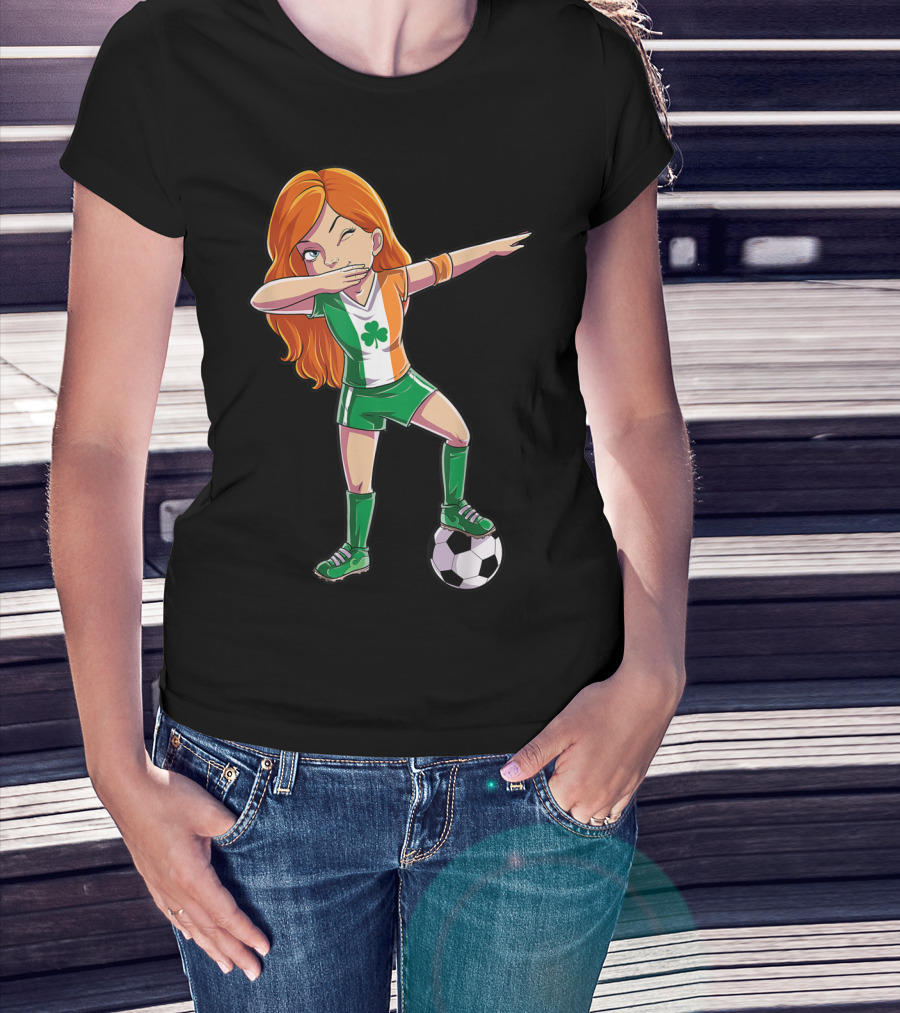 Dabbing Irish Soccer Girl With Shamrock Jersey And Football T-Shirt
