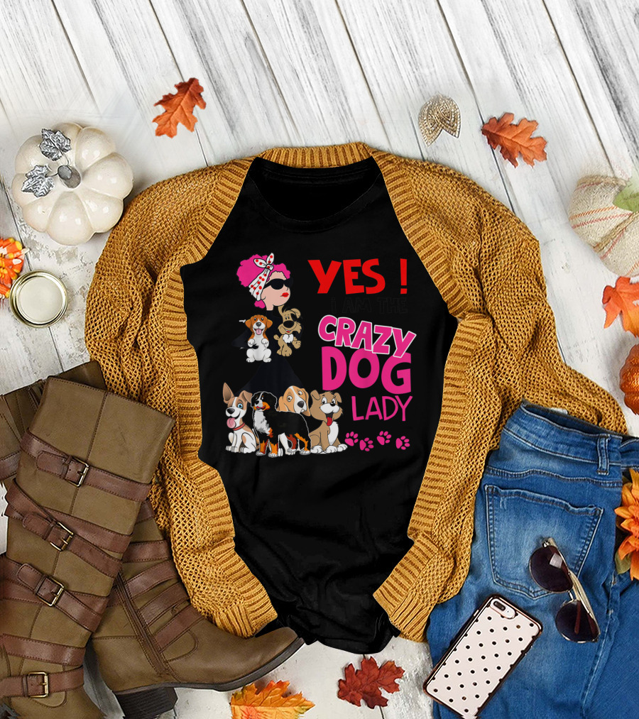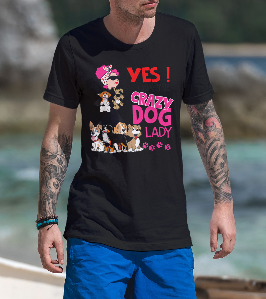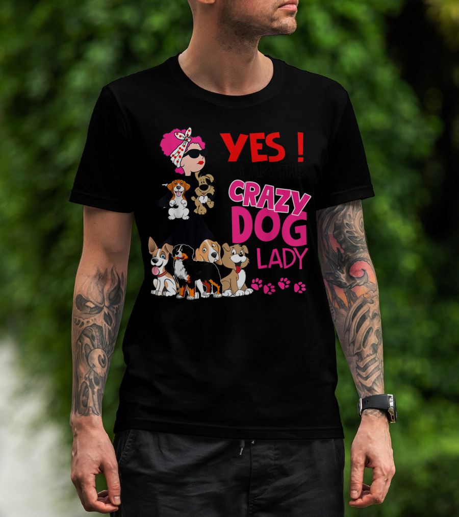 YES I Am The Crazy Dog Lady With Cute Dogs And Paw Prints T-Shirt