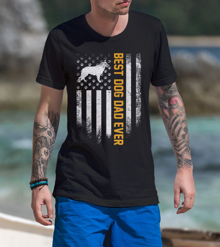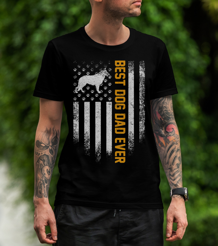 Best Dog Dad Ever Vintage USA German Shepherd Flag T-Shirt