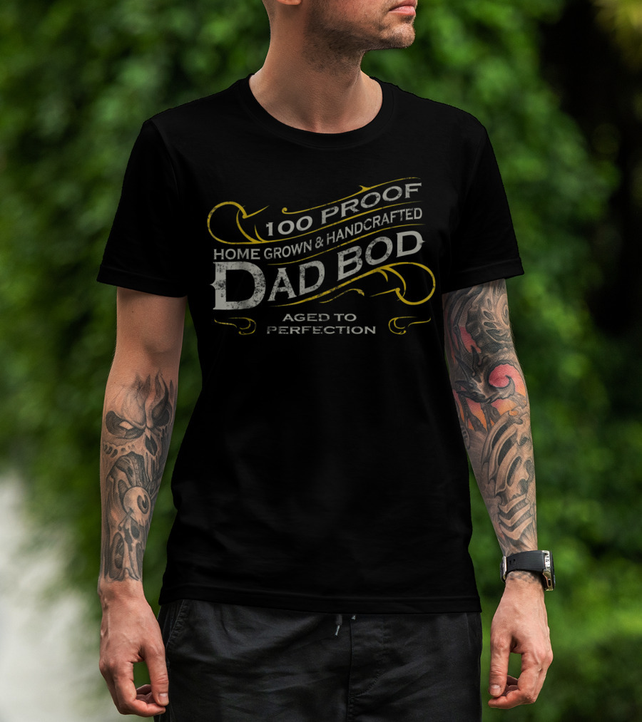 100 Proof Home Grown Handcrafted Dad Bod Aged To Perfection Vintage Whiskey Label T-Shirt