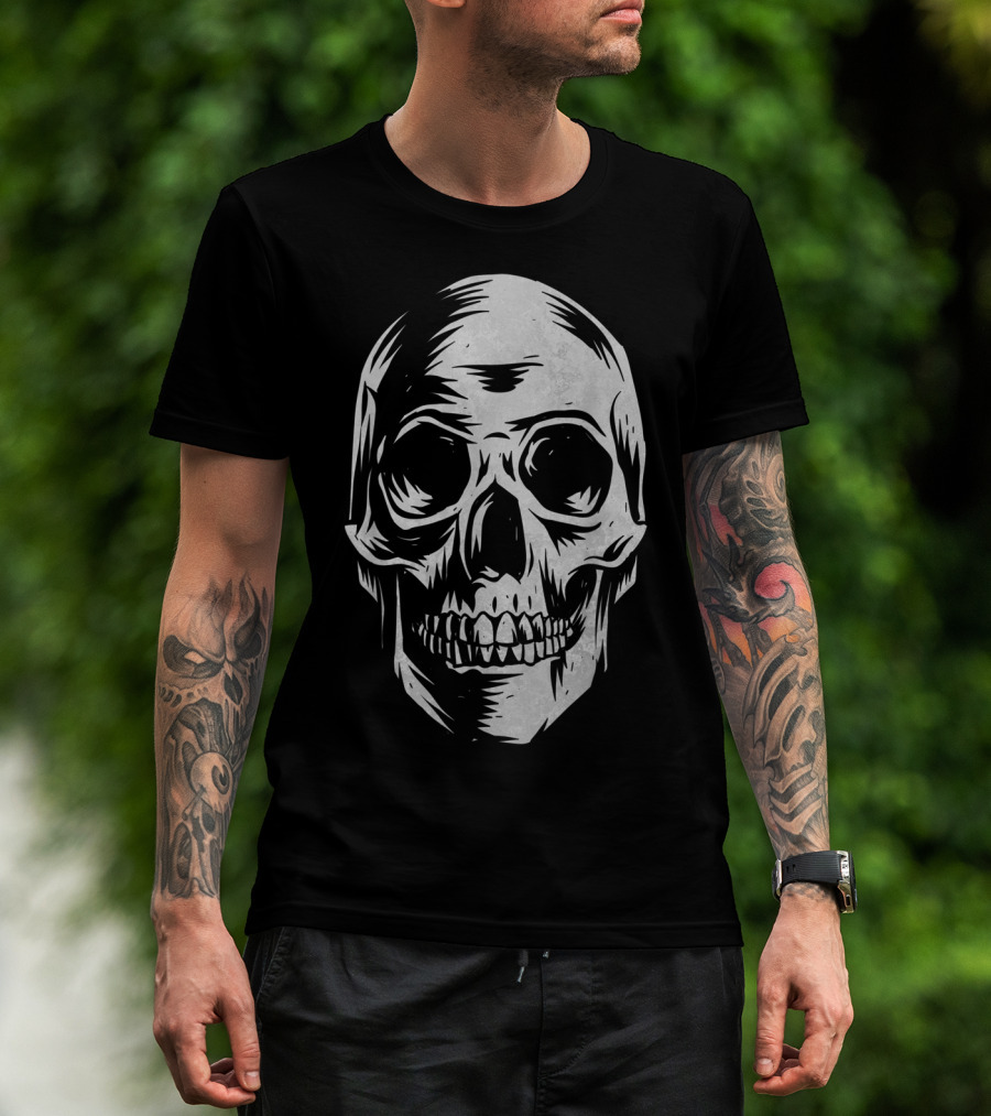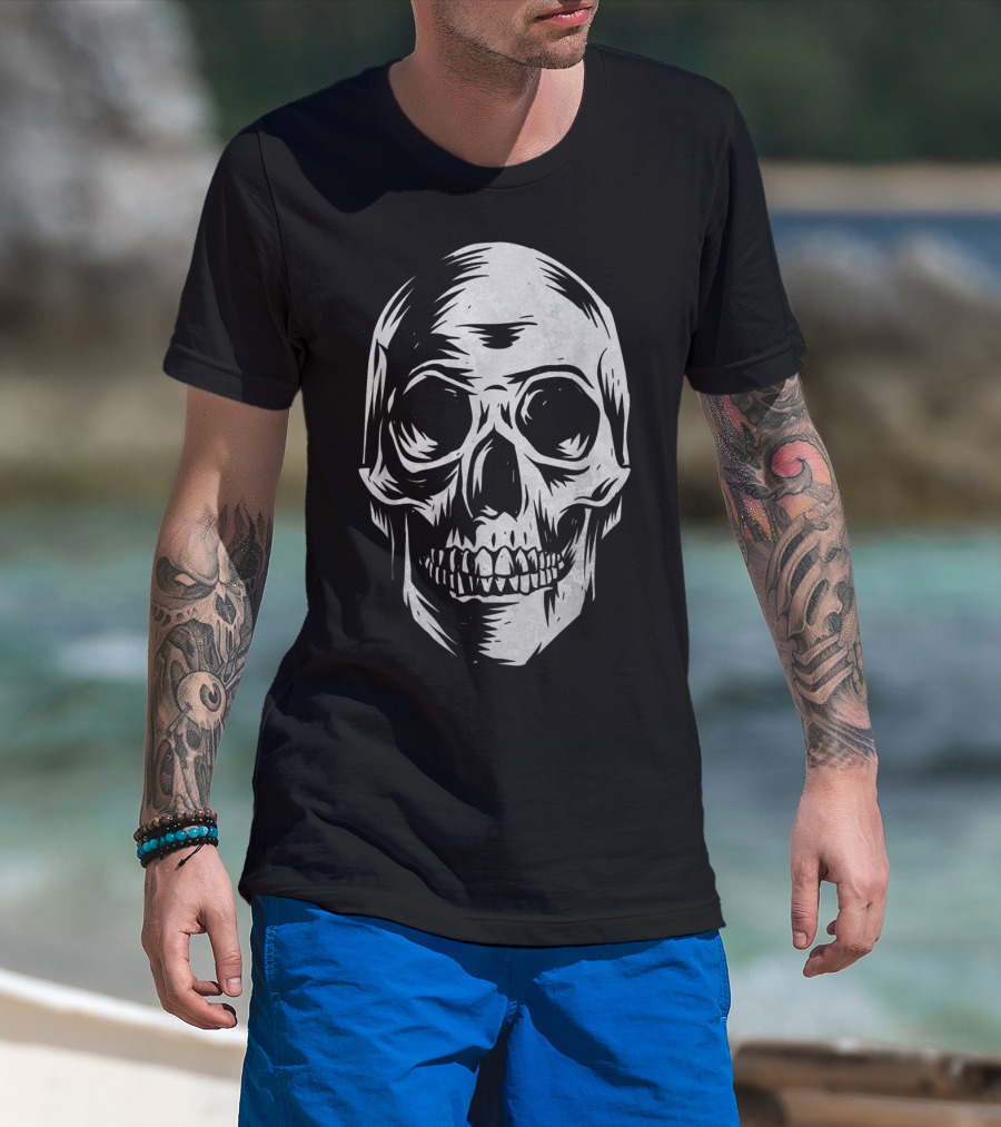 The Skull Distressed Vintage Hall T-shirt is designed for everyday wear and a consistent fit. Fabric is pre-shrunk ring-spun cotton with durable stitching. See the size chart below for exact measurements.