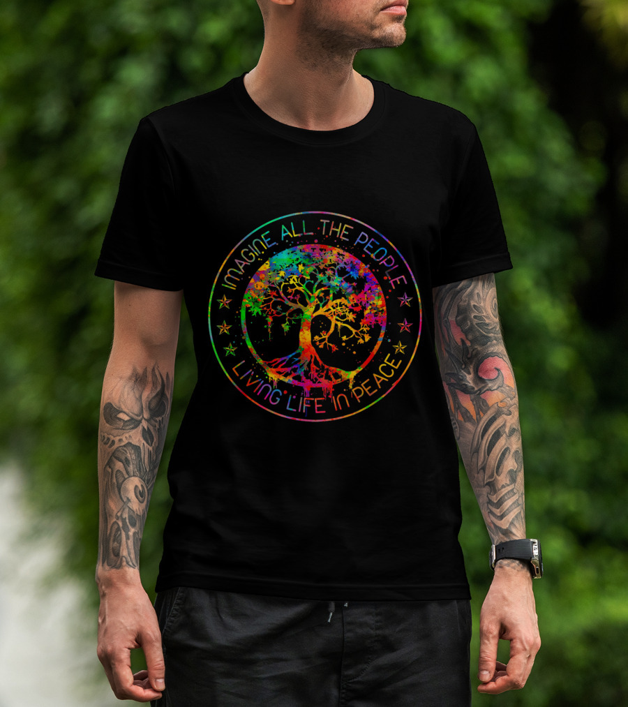 Imagine All The People Living Life In Peace Tree Symbol Multicolor Star Circle T-Shirt