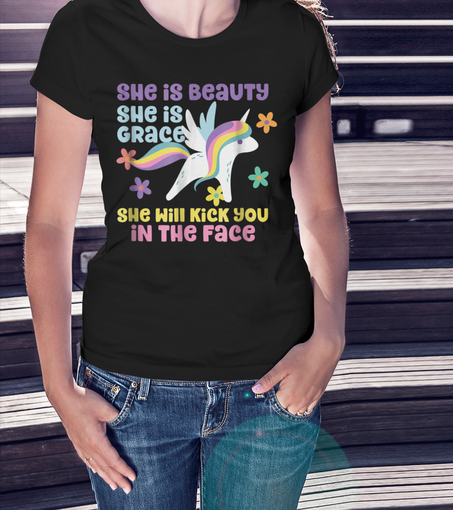 She Is Beauty She Is Grace Unicorn She Will Kick You In The Face T-Shirt