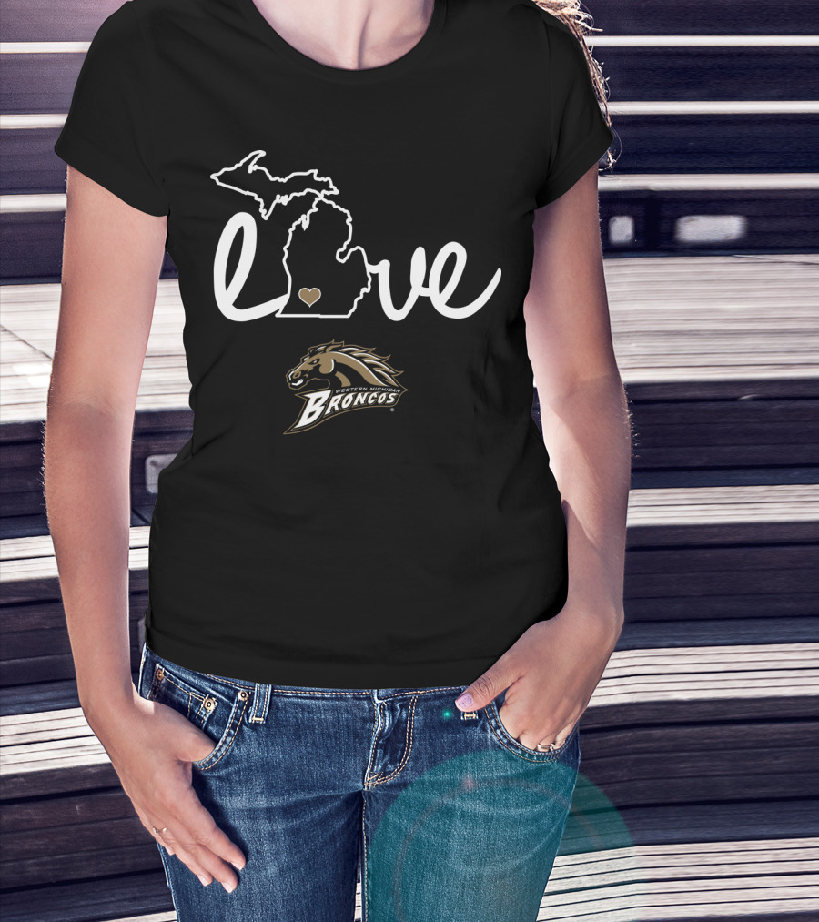 Western Michigan Broncos Love Michigan Map Heart T-Shirt