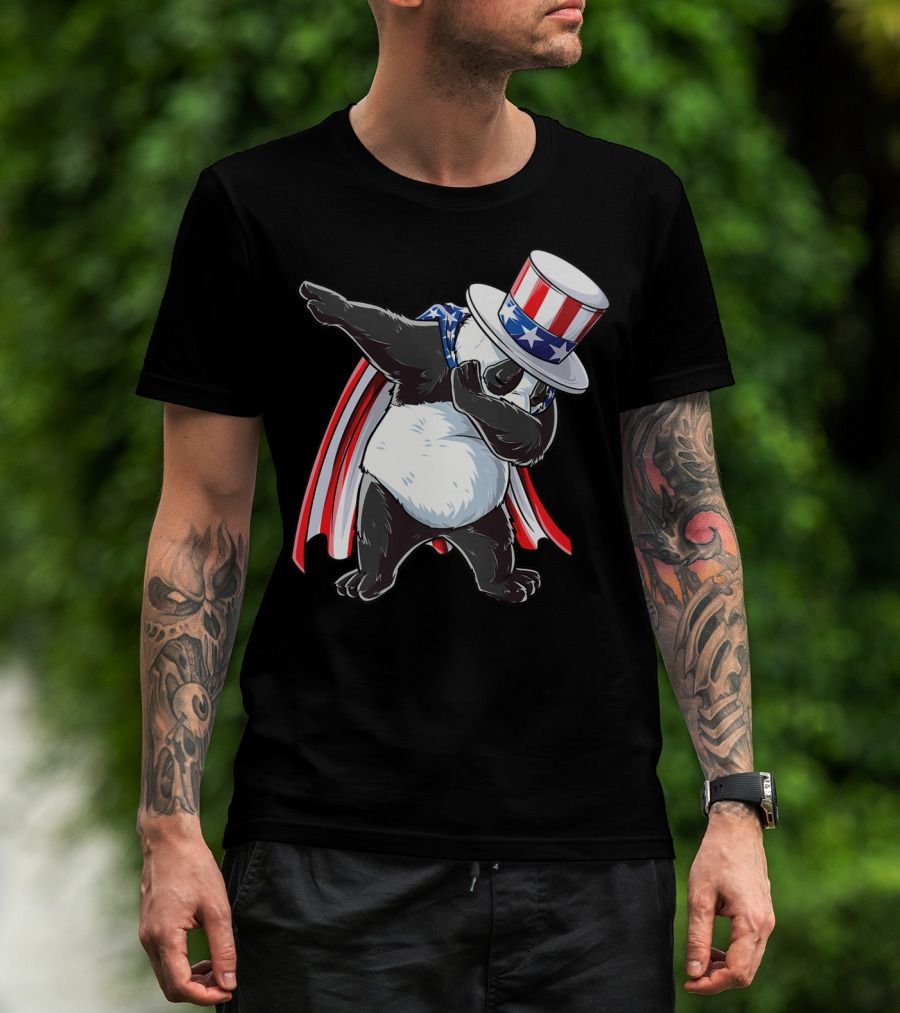 Dabbing Uncle Sam Panda Fourth Of July Red White And Blue Cape T-Shirt