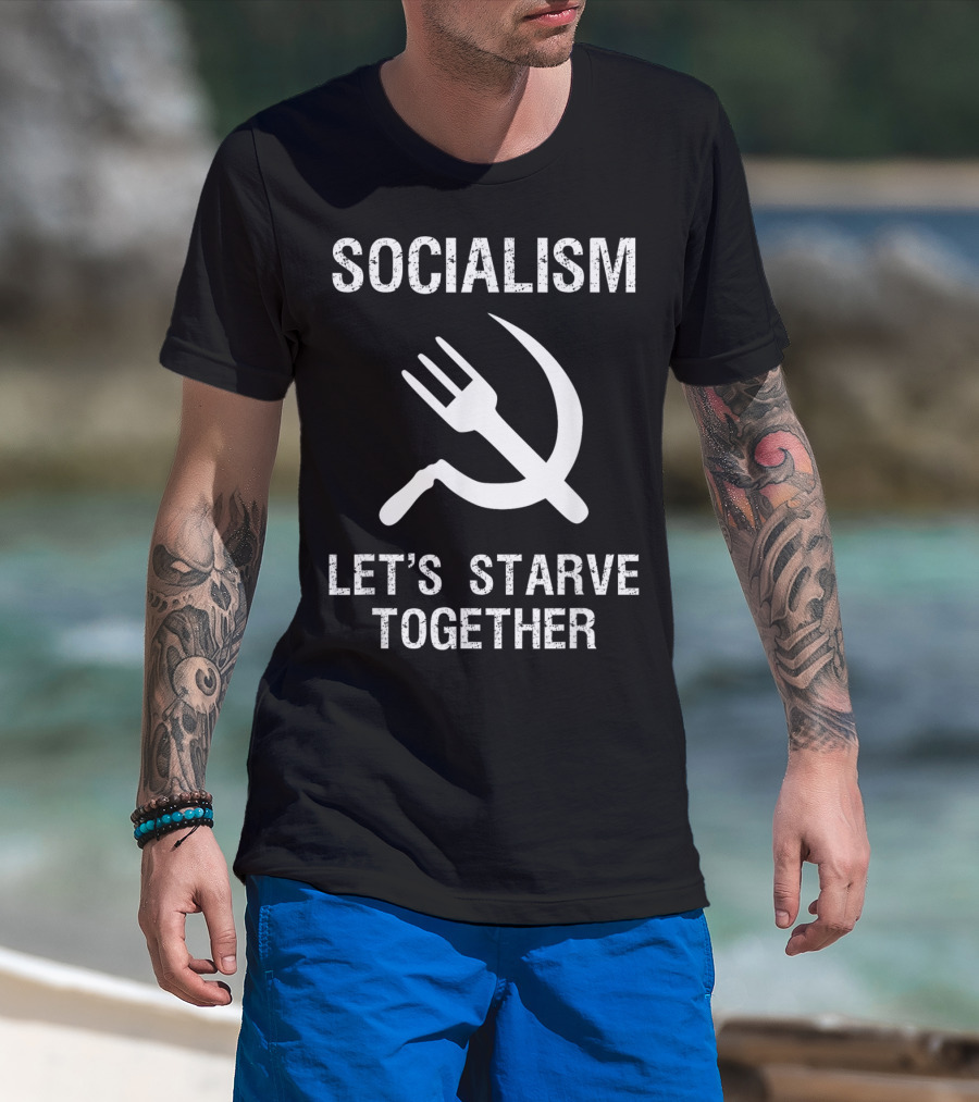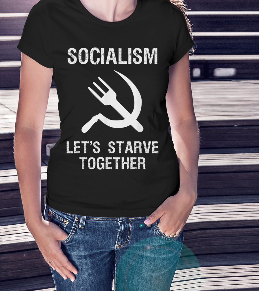 Socialism Let's Starve Together Anti Hammer Sickle Fork T-Shirt