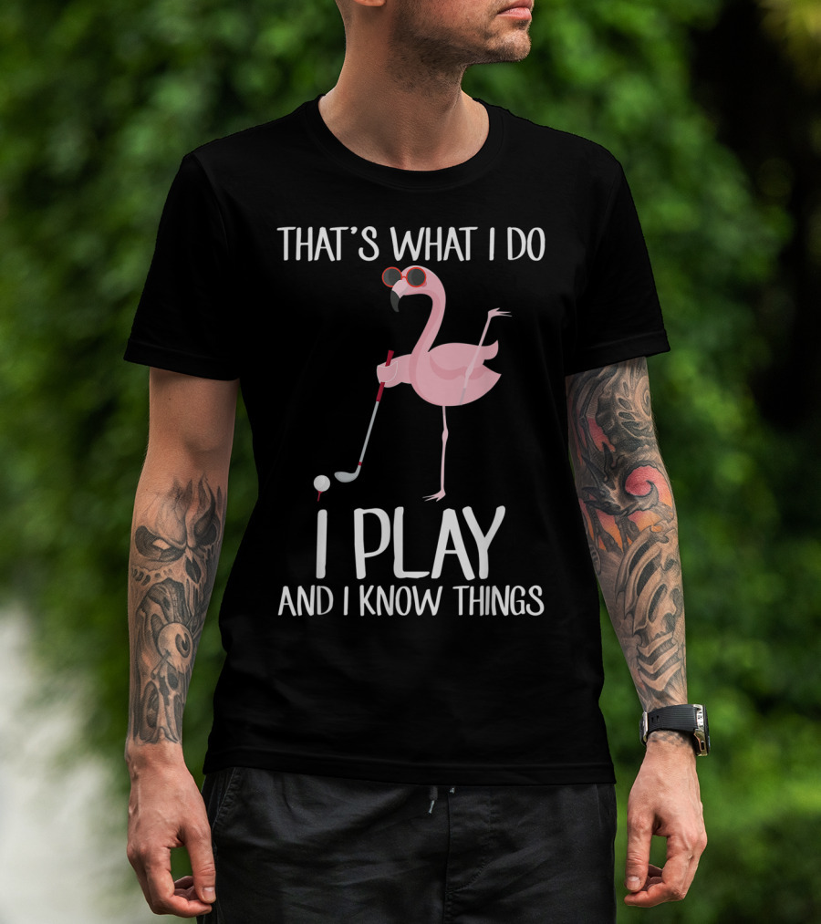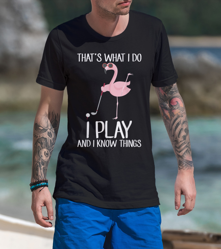 That's What I Do I Play And I Know Things Flamingo Golf T-Shirt