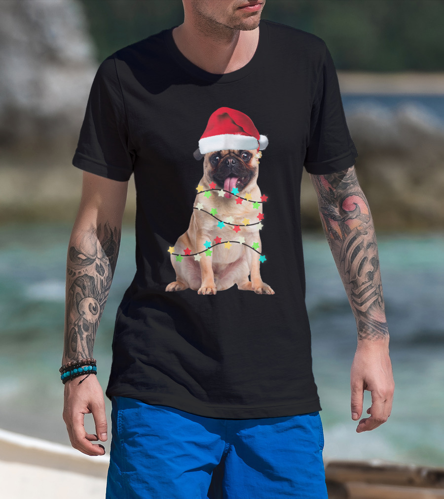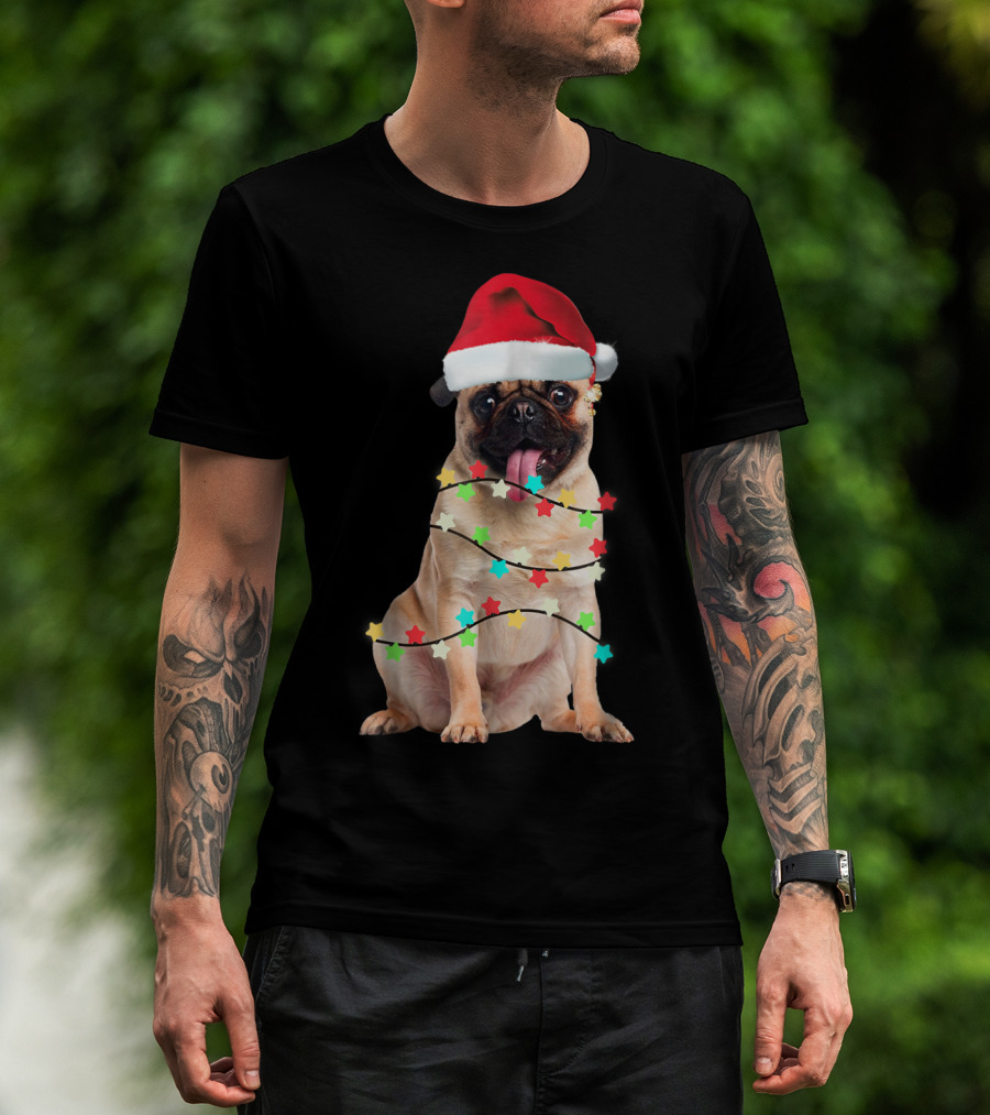 Pug Santa Christmas Light Wrapping Festive Holiday Hat T-Shirt